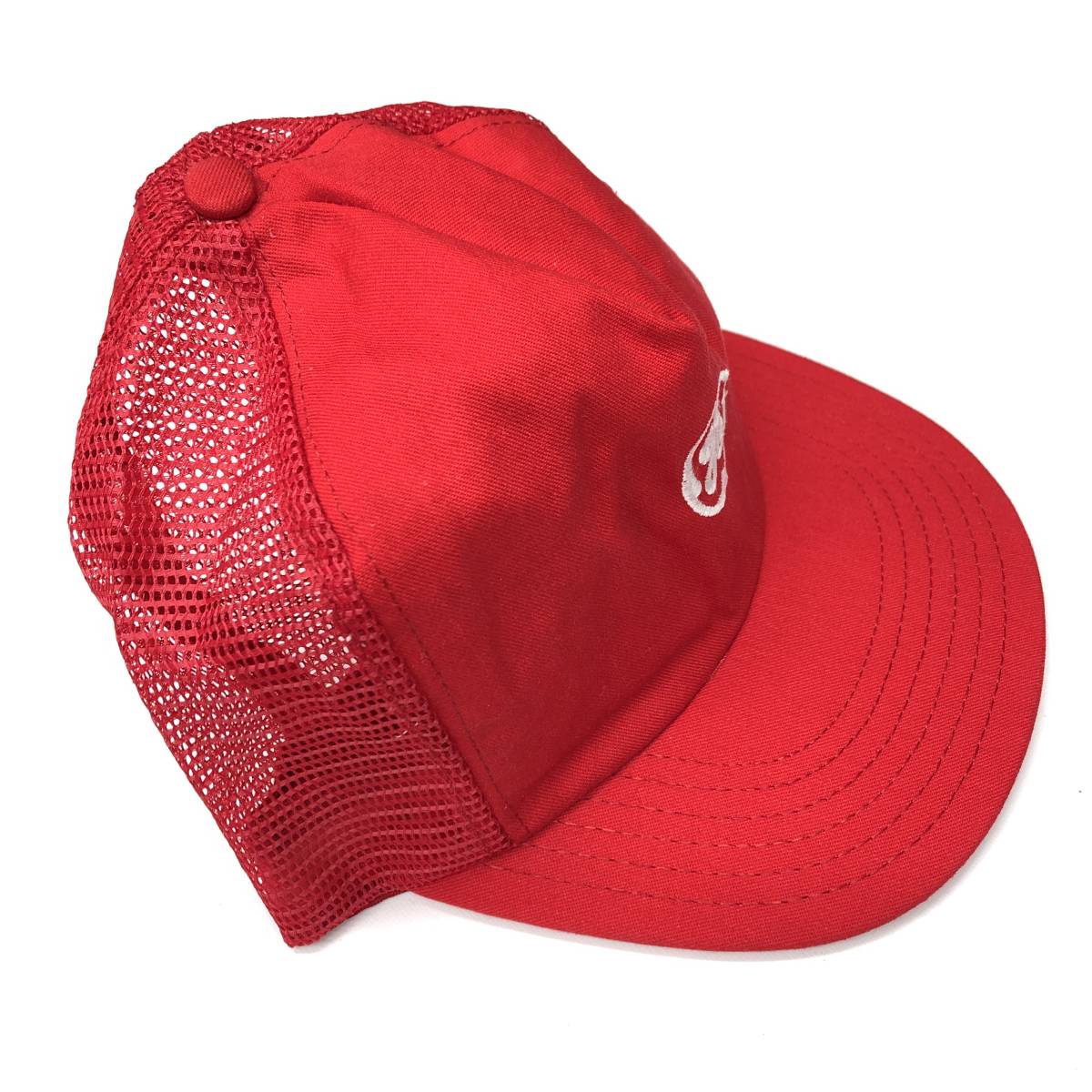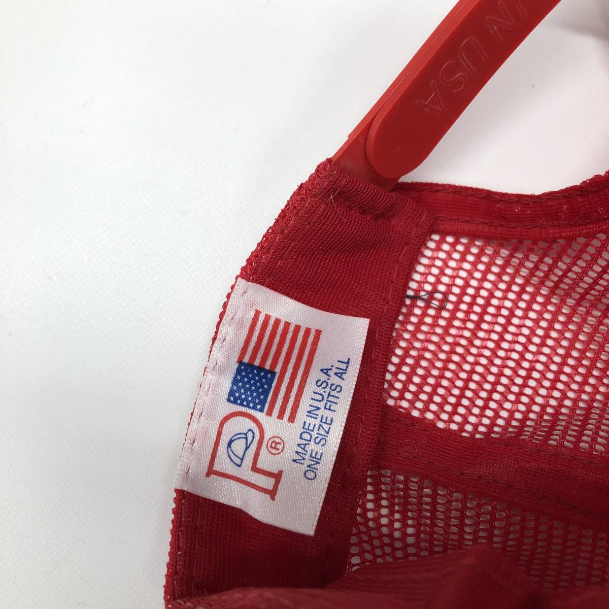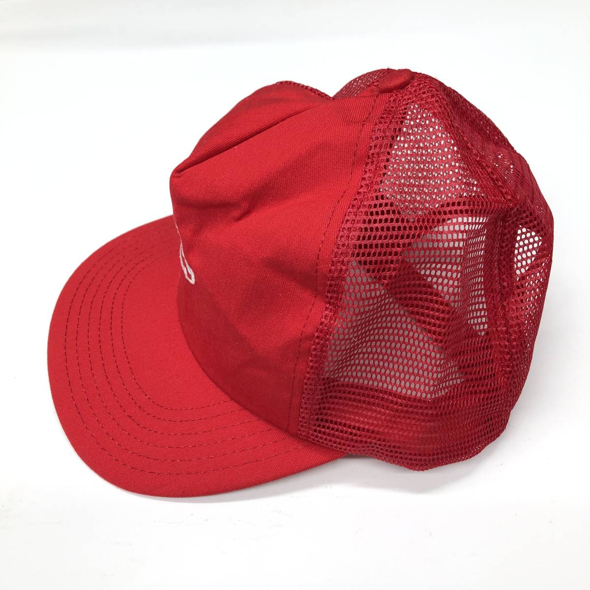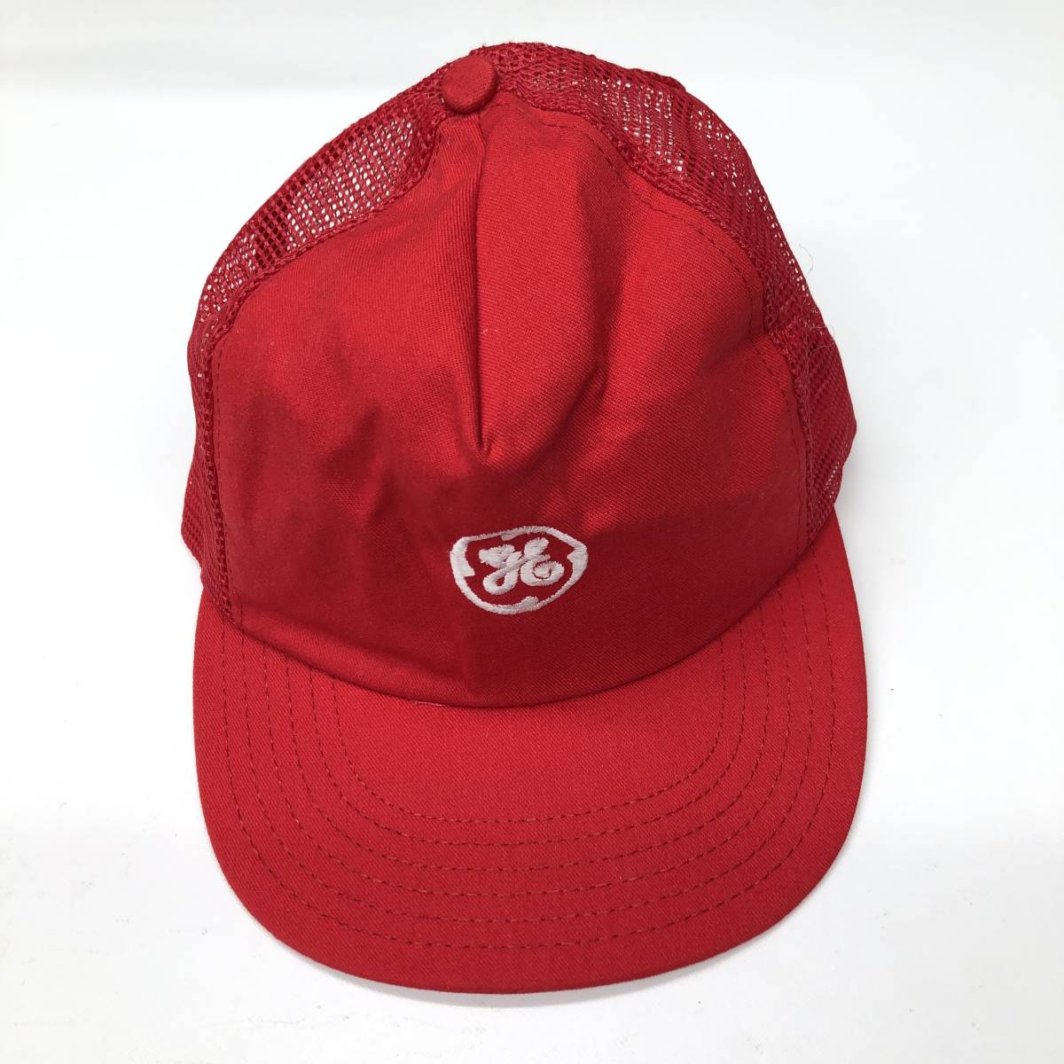 90s USA製 6パネルキャップ レッド フリーサイズ GE 企業物 ゼネラル・エレクトリック General Electric