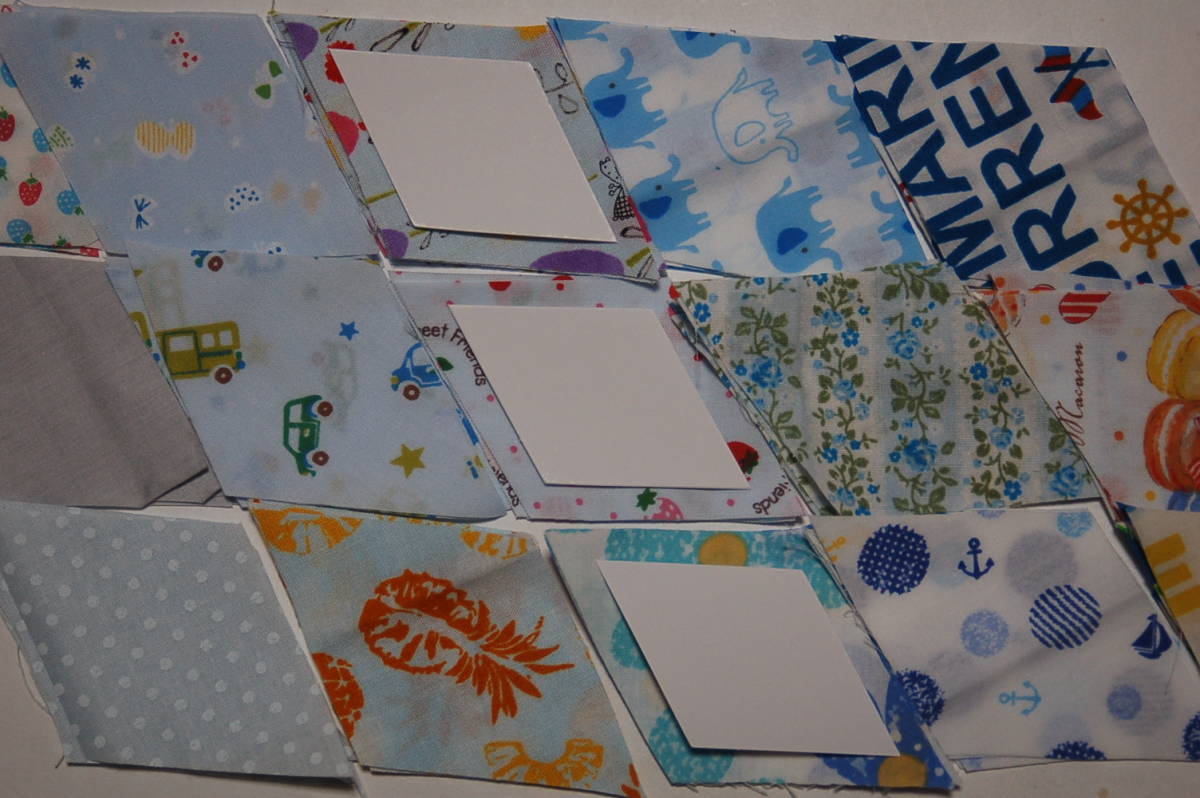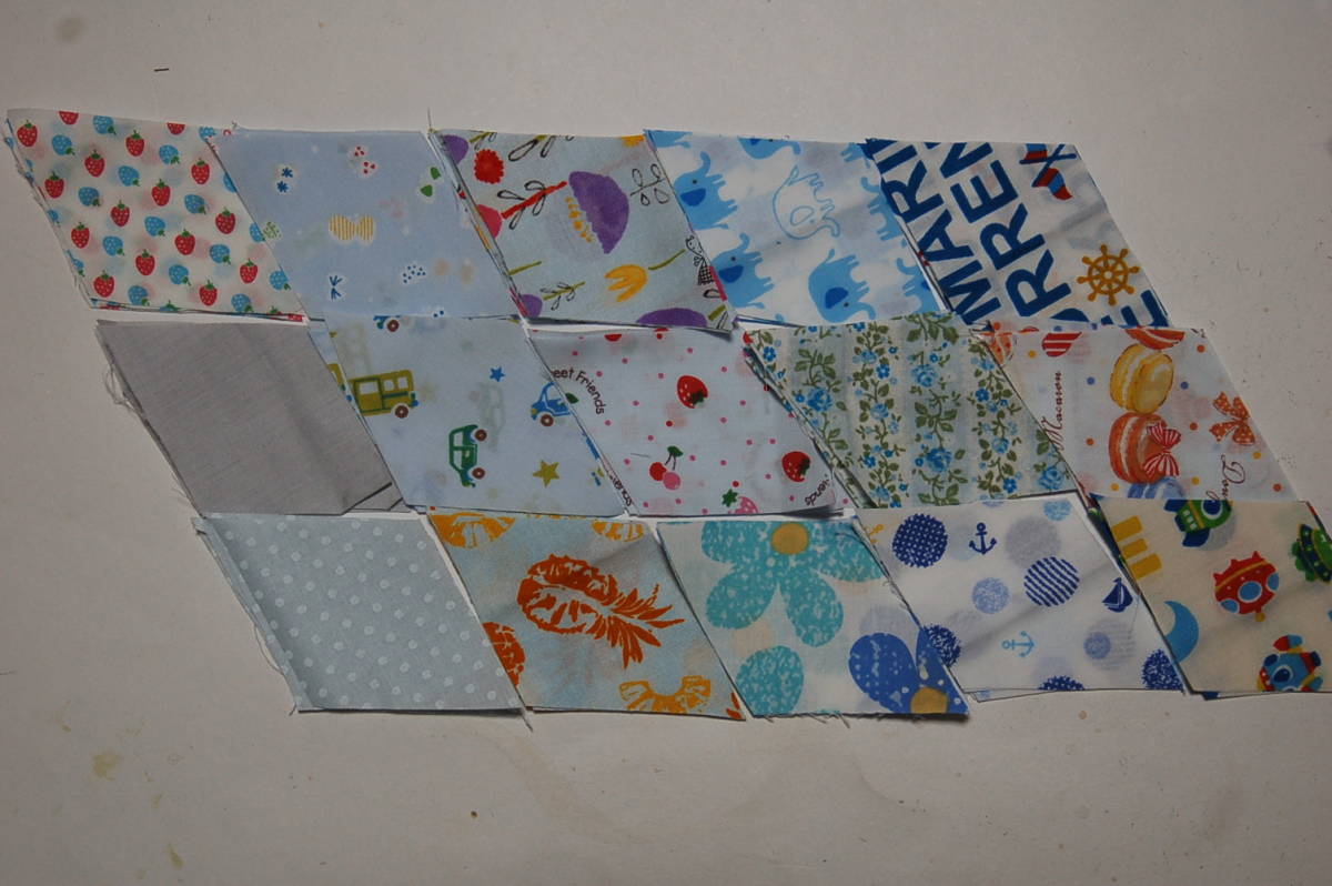 パッチワーク用ひし形出来上がりサイズ45㎜に裁断してます。