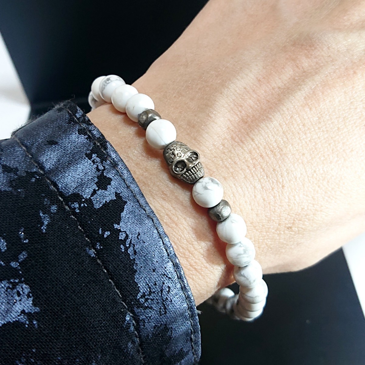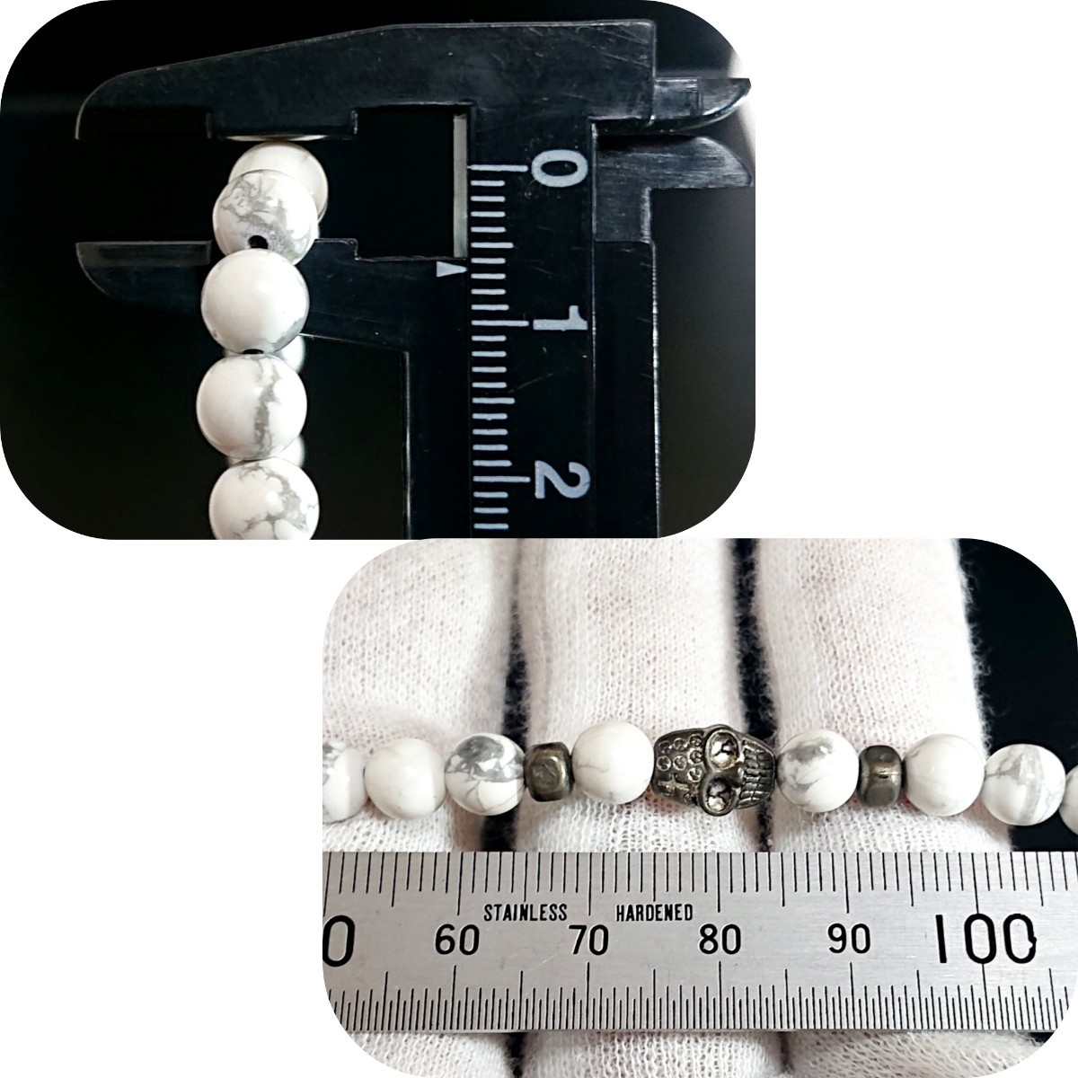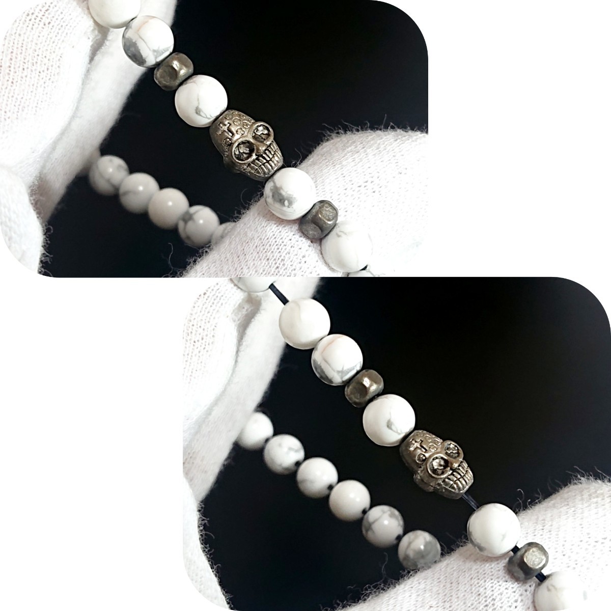 スカルとビーズはピューター製で