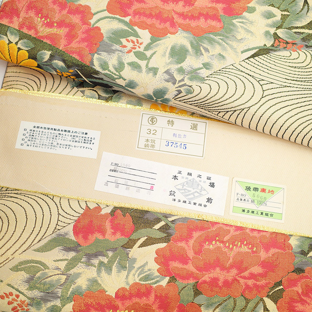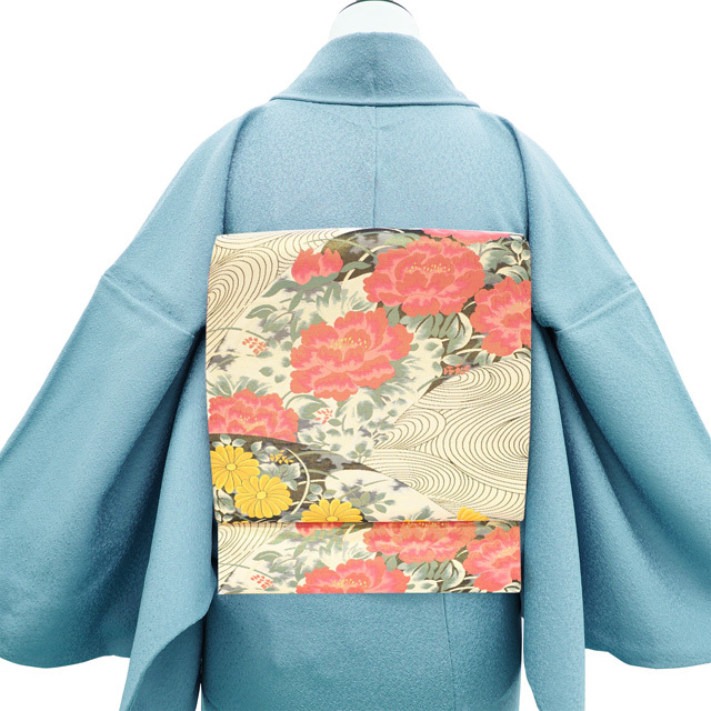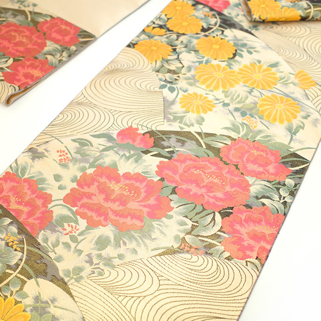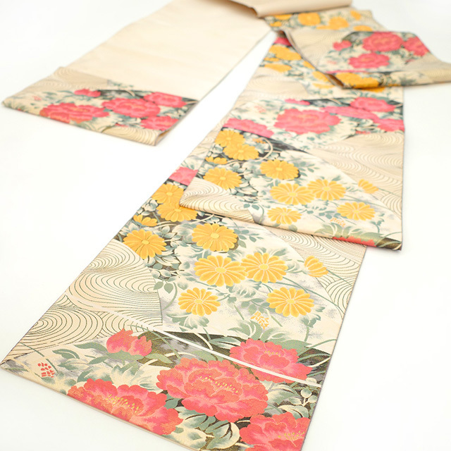 そこに、牡丹・菊・流水が丁寧に織り上げられています。