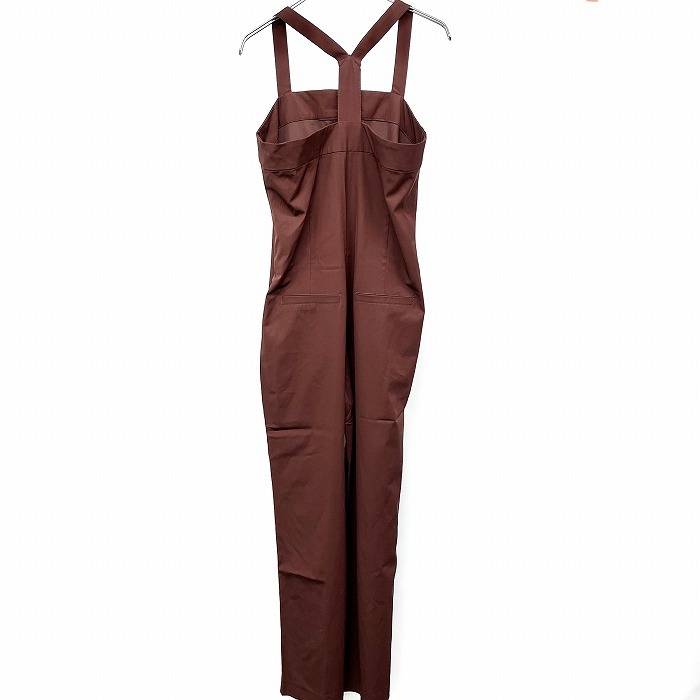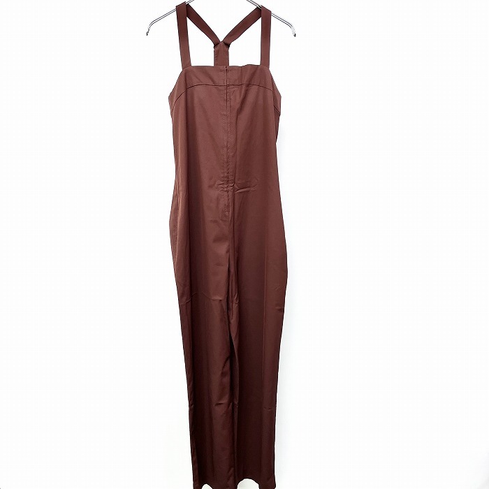 商品タイトル | emmi atelier エミ M (1) レディース 若干薄手 ハイウエストサロペット 肩紐 パンツ 無地 フロントホック留め キュプラ×綿など 赤茶系 |