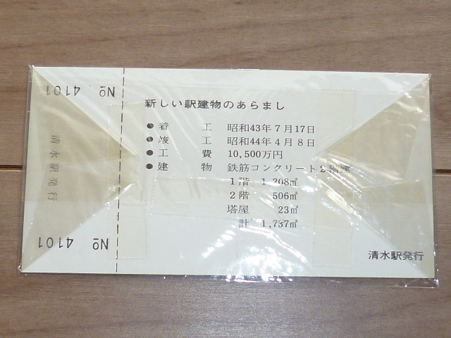 記念切符★清水駅改築 記念入場券★清水駅発行★昭和44年(1969)★1枚★4101