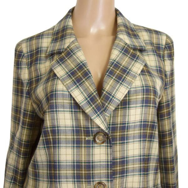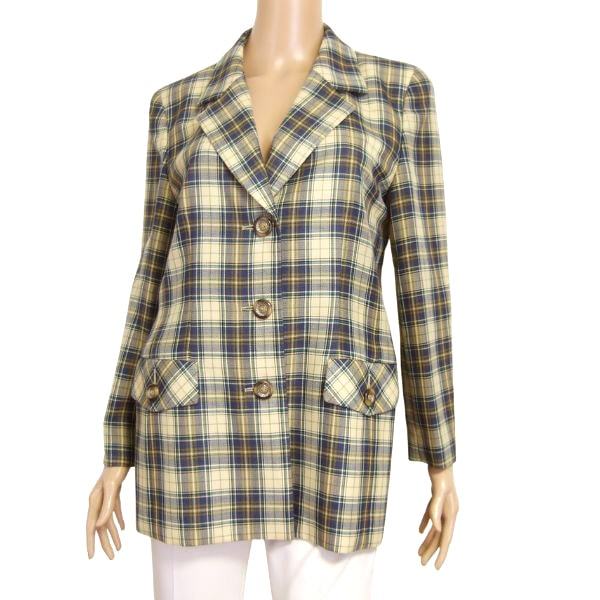 商品詳細 | NO-M6233 ★【ブランド】 * Leilian 日本製 ★【特徴】 * クラシカルな配色のチェック柄が目を惹くお洒落なテーラードジャケットです。 素材は透け感のあるややしゃり感のある上質素材(ウール混)でとても軽やかな着心地。 程よくストレッチの効いた春夏向けの薄手素材です。 フロント3ヶボタン留め仕様。 存在感のあるクラシカルボタンもおしゃれです。 大人女性らしいテーラードジャケット、この機会に是非いかがでしょうか♪ ・肩パット× ・裏地× ・伸縮性○ ・ポケット○ ・季節性 春夏向け ※状態につきましては当社基準のランク表も合わせてご参考下さい。 | ||||||||||