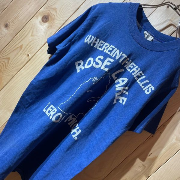 [KWT3786] 80's 90's US古着 d 半袖Tシャツ レディース ブルー M ポス