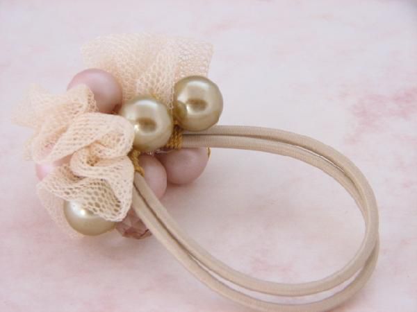 ヘアゴム パールビーズ ベイジュ hg02-be ネコポス便可