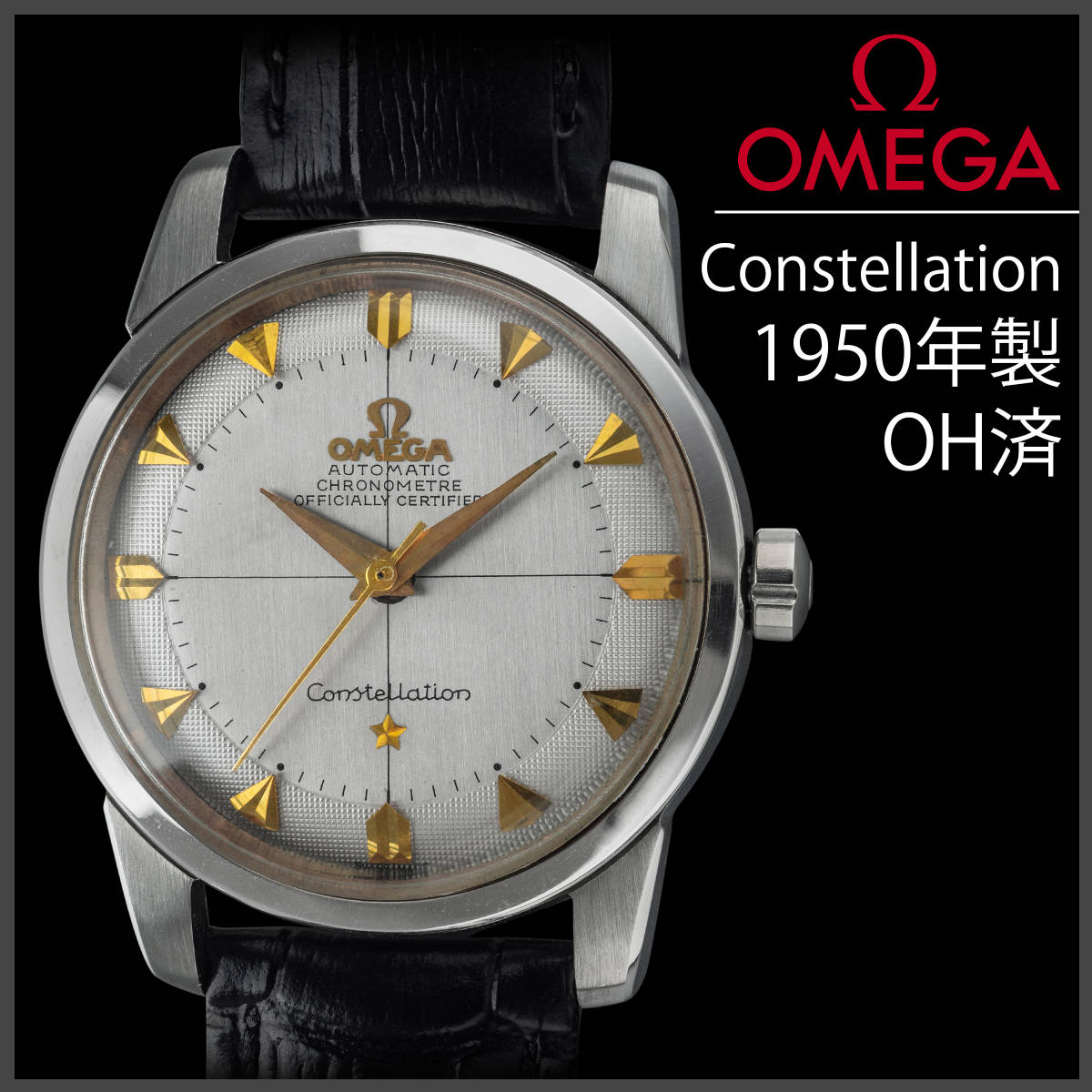 | 【スペック】 モデル ●Constellation REF ●2849 4 SC 製造年 ●1950 シリアル番号 ●12273817 ケース ●34mm (リューズ除く) ・Stainless Steel ムーブメント ●自動巻き、Cal.354 ラグ ●18mm 付属品 ●時計、新品本革レザーベルト 【コンディション】 全体 ●A ランク ケース ● キレイ状態 風防 ● キレイ状態 オメガの純正マーク付き ダイヤル ● キレイ状態 針・インデックス ● キレイ状態 ムーブメント ●OH済み・絶好な状態、日差=(9 秒) | |||