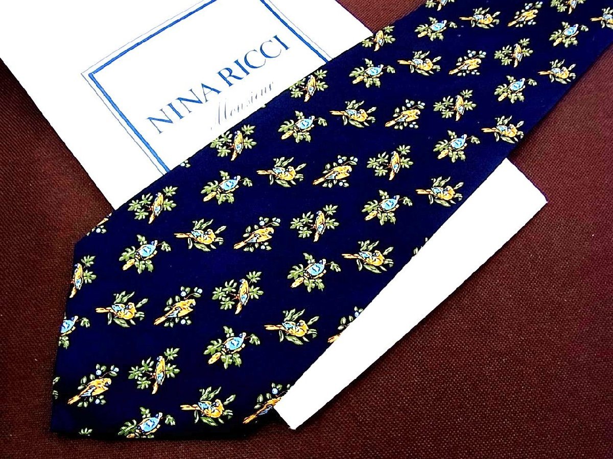♪27097C♪良品【花 植物 鳥 柄】ニナ リッチ【NINA RICCI】ネクタイ