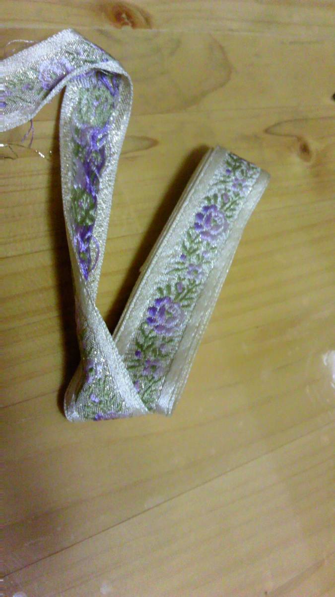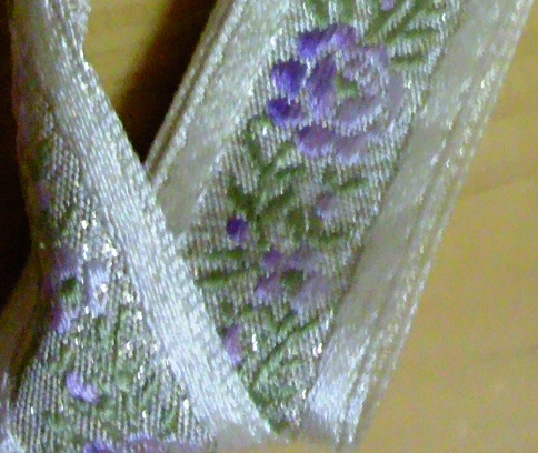 [ヘアアクセサリ] リボン ジャガード 刺繍リボン 薔薇 ホワイトシルバー 紫 20mm [コレクション]