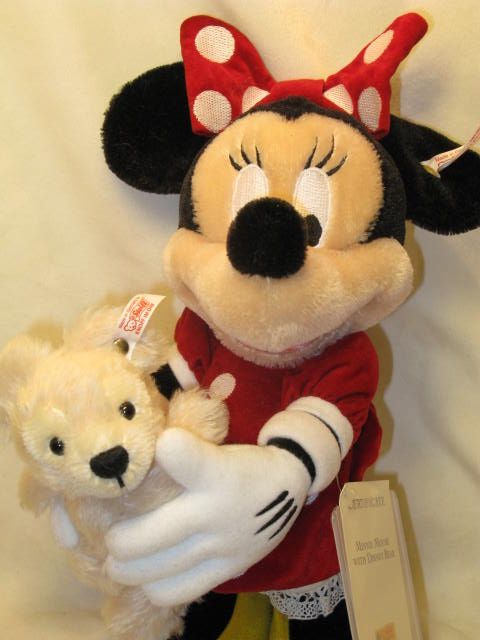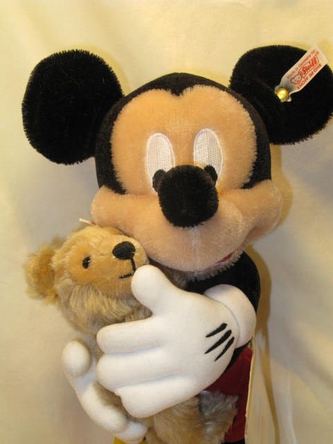 2006年、シュタイフがフロリダのディズニーワールドで開催されたベア&ドールコンベンション限定1500体で製作した「ミッキーマウスwithディズニーベア」と2007年に1500体限定で製作された「ミニーマウスwithディズニーベア」のセットです。です。顔や足の裏、おしりなどにミッキーの顔のモチーフがデザインされているとても可愛らしいベアをミッキーとミニーが抱きしめているデザインです。ベアにもジョイントが入っています。大きさ30cm&15cm、それぞれにピンが2個付属します。仕事の都合等でご連絡及びご発送ができない期間が発生する場合には自己紹介欄及びオークション終了時にヤフーより送信されるメールに明記させていただきます。よろしくご確認くださいませ。