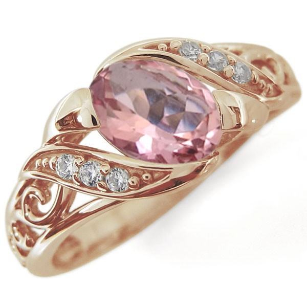 10月誕生石大粒ピンクトルマリンを一粒使用した、10金製のアラベスクリング(指輪)です。