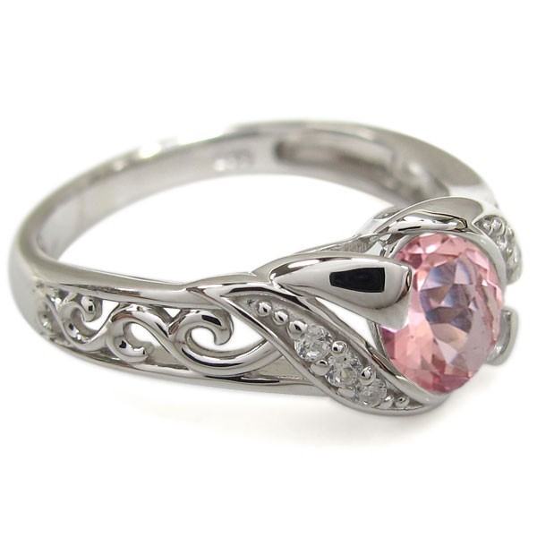 オーバルカットのピンクトルマリンをクラシカルな唐草模様で包み込みました。