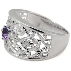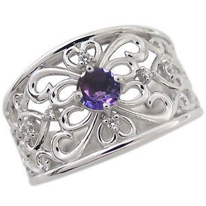 プラチナ リング 一粒 アメジスト リング 指輪 唐草2月誕生石大粒アメジストを一粒使用した、唐草デザインのプラチナ製のリング(指輪)です。