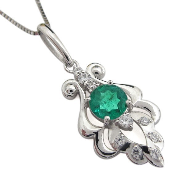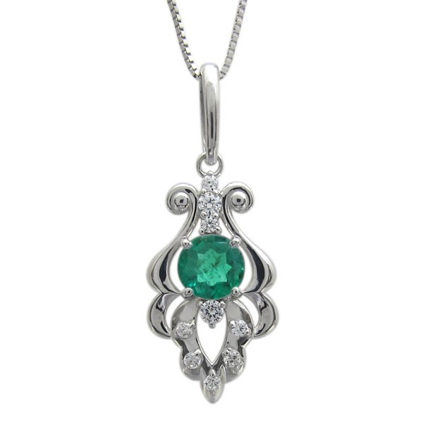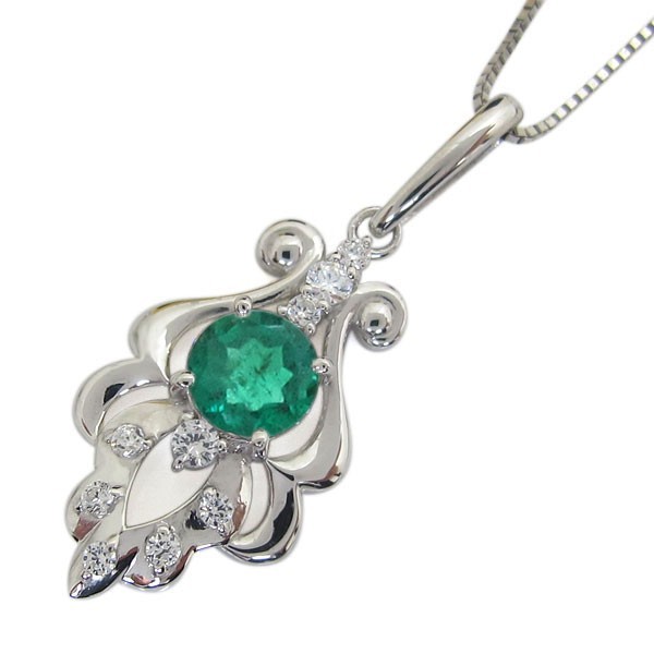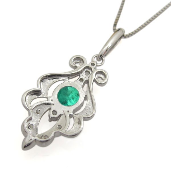 5月誕生石エメラルドを使用したプラチナ製の、アラベスク(唐草)モチーフネックレス・ペンダントです。