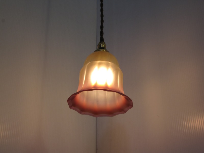 ピンクのアンティークランプシェード/ウランガラス/ヴァセリンガラス/吊り下げ/ペンダントライト/引掛けシーリング/インテリア雑貨/AL-2311