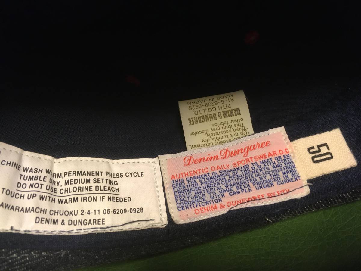 日本製で、表記はコットン100%の濃紺デニム生地を使用しております。