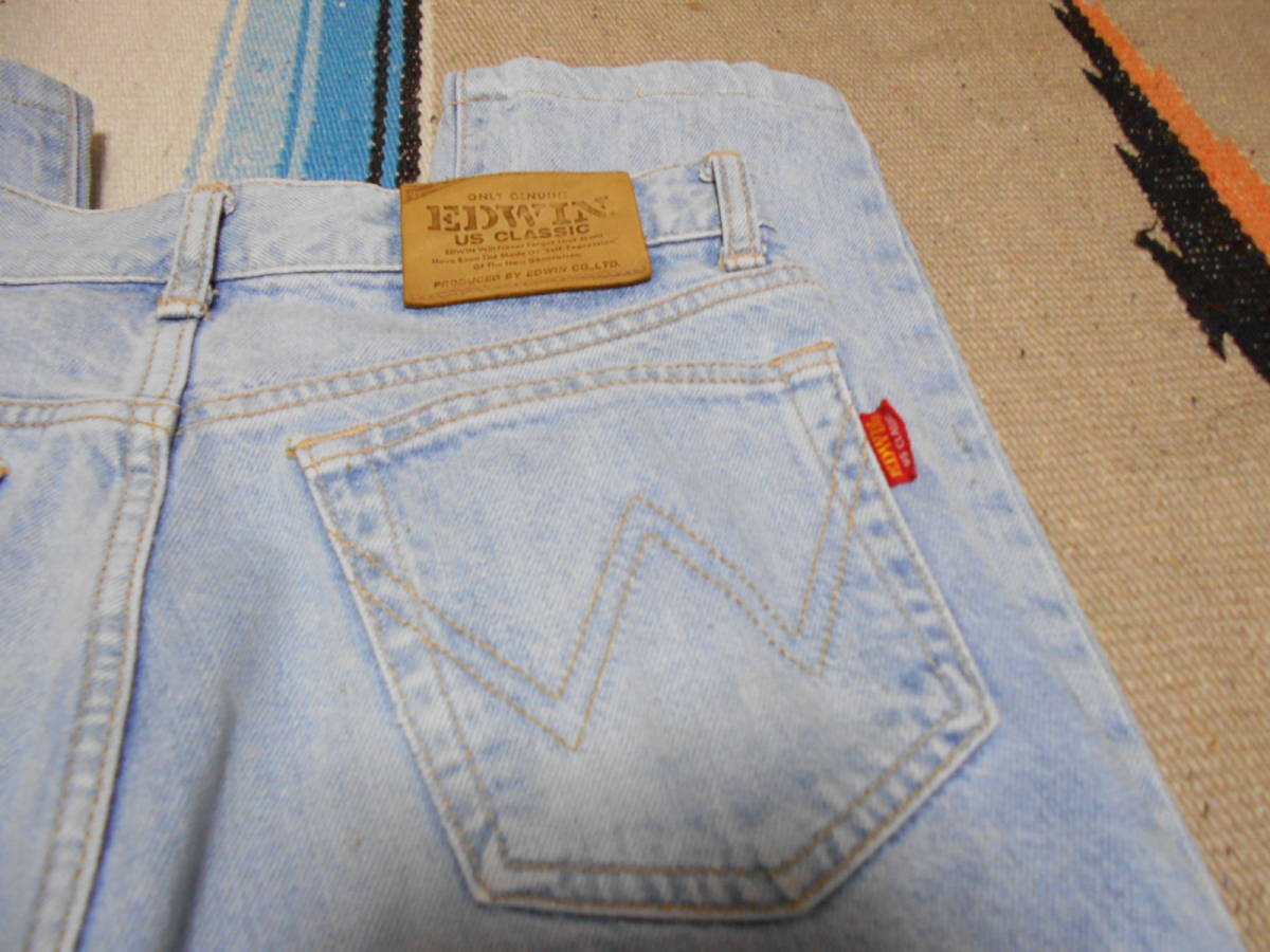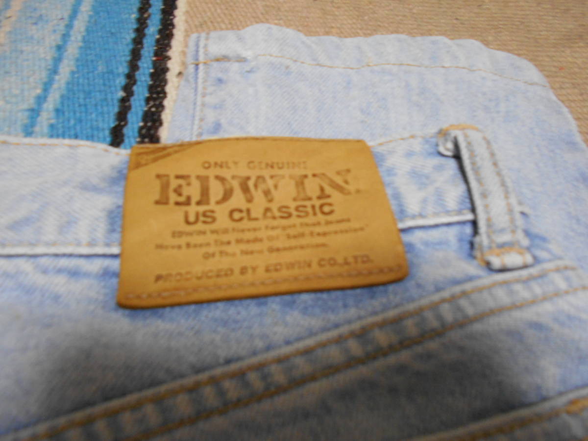 1980年代製 EDWIN US CLASSIC MADE IN JAPAN VINTAGEエドウィン アイスウォッシュ ジーンズ レザーパッチ ビンテージ スリム昭和レトロ