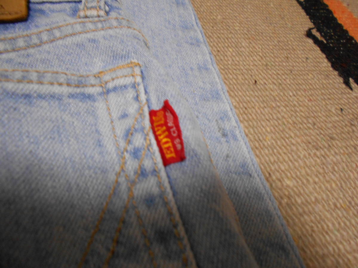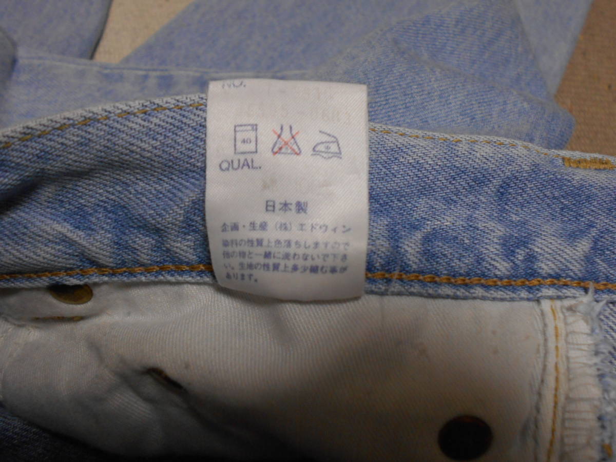 「EDWIN」 US CLASSIC 特有 ハイオンスのビンテージデニム素材、 アイスウォッシュの鮮やかな発色、随所の縫製やリベット補強の細部までしっかりした作り MADE IN JAPAN