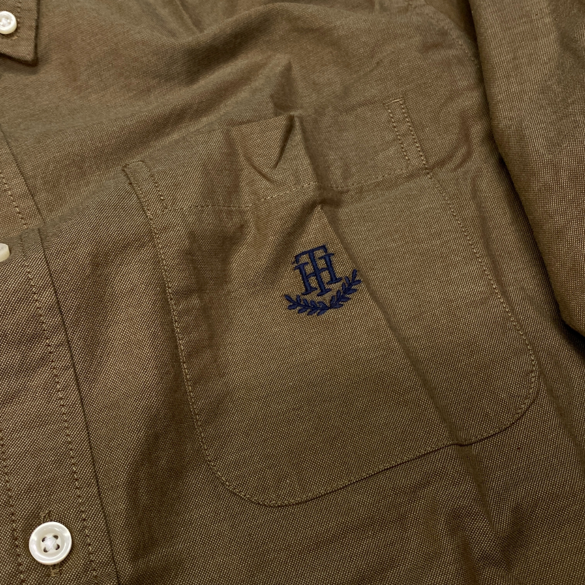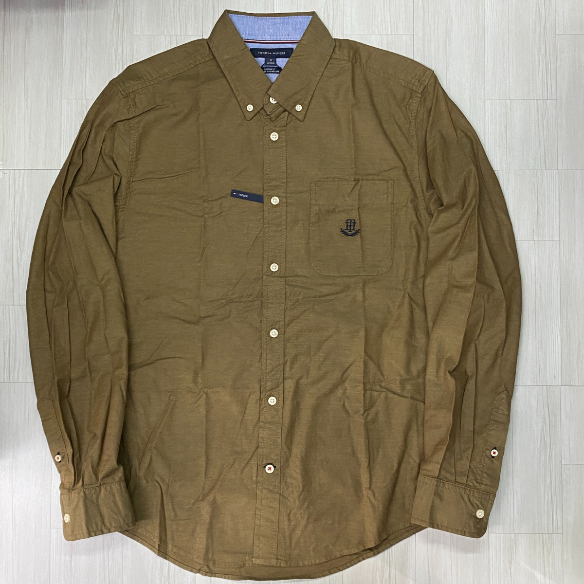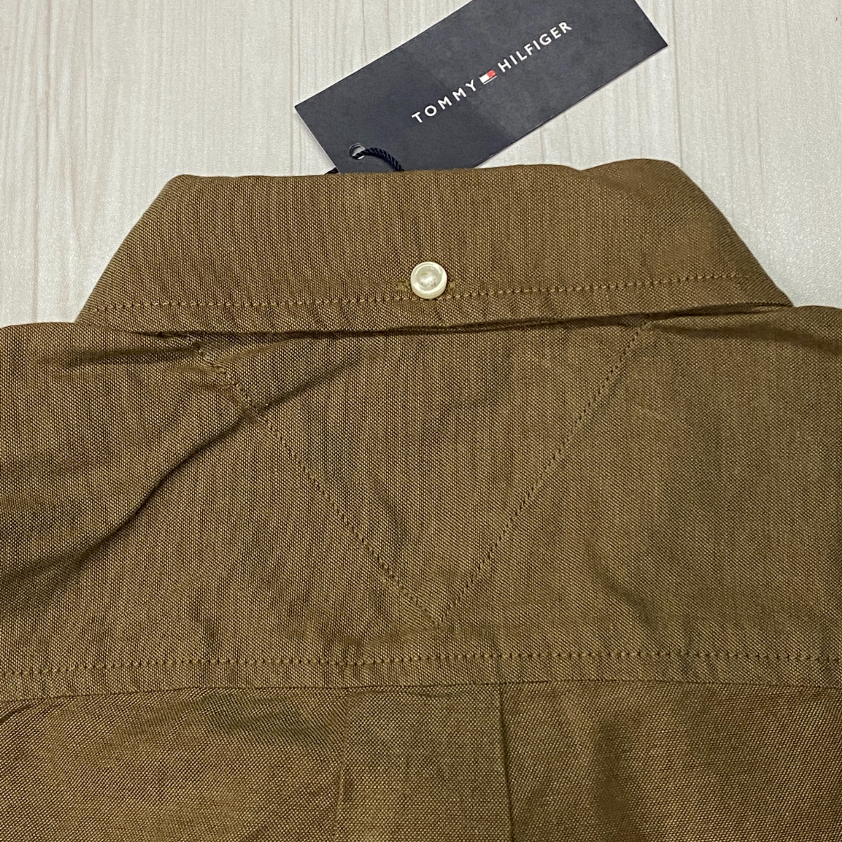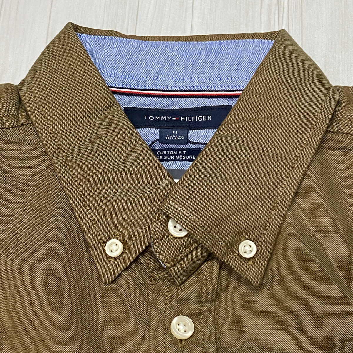 USA正規品 【M】 トミーヒルフィガー TOMMY HILFIGER USA ストレッチ カスタムフィット THロゴ オックスフォードシャツ (R4F-29) サンド
