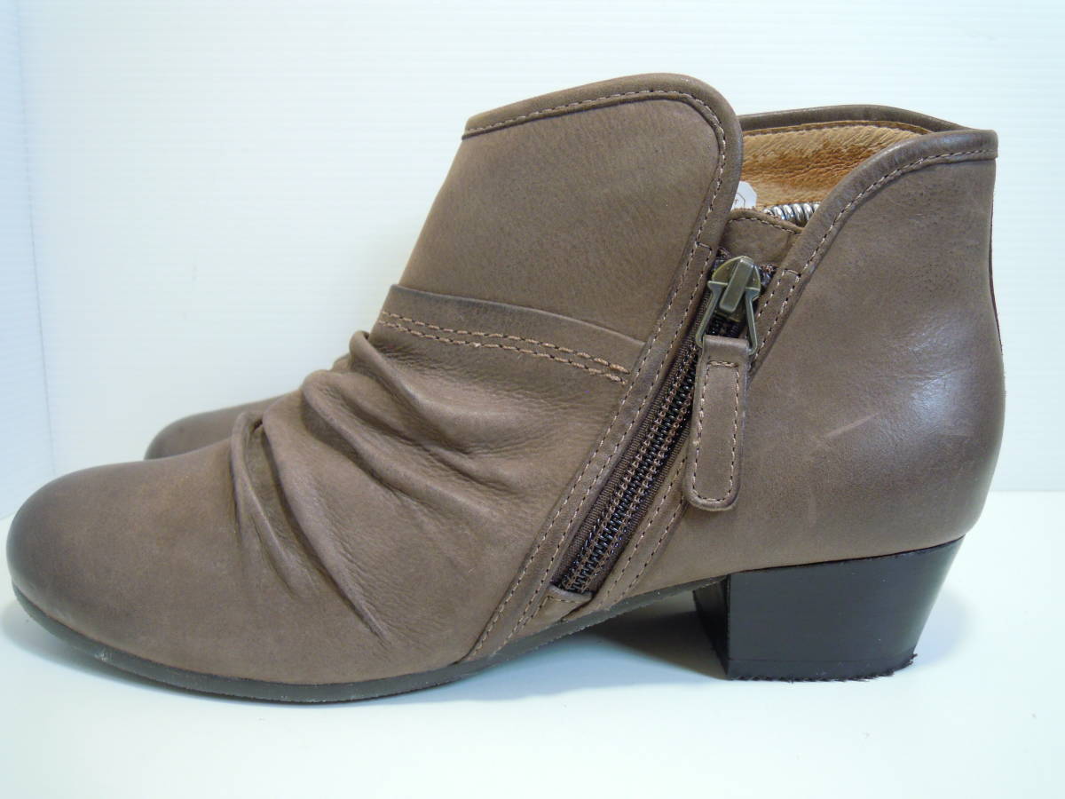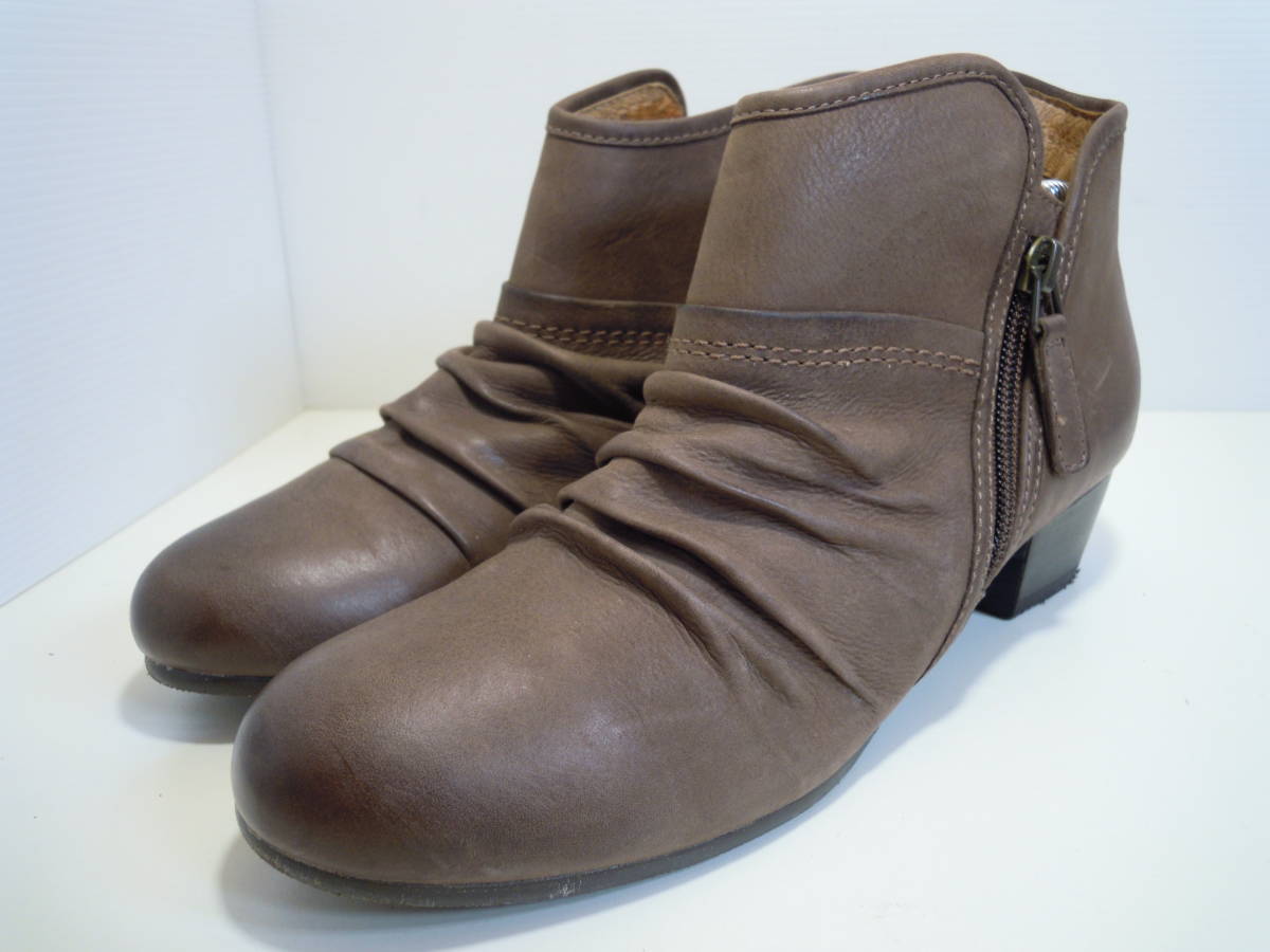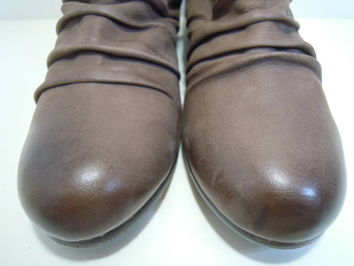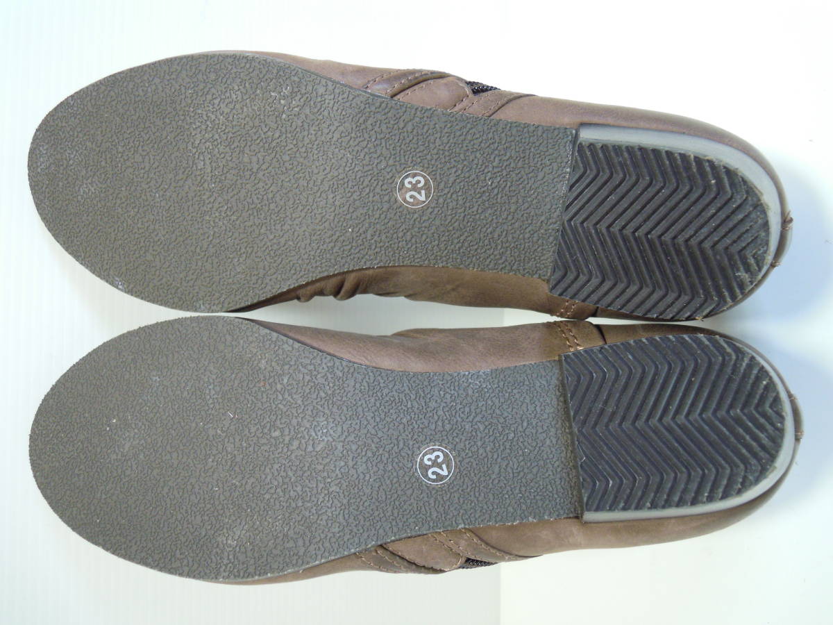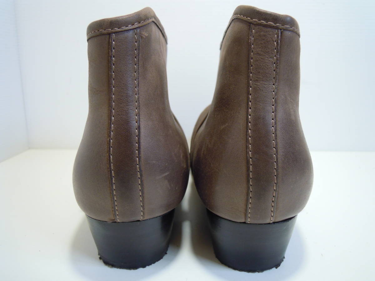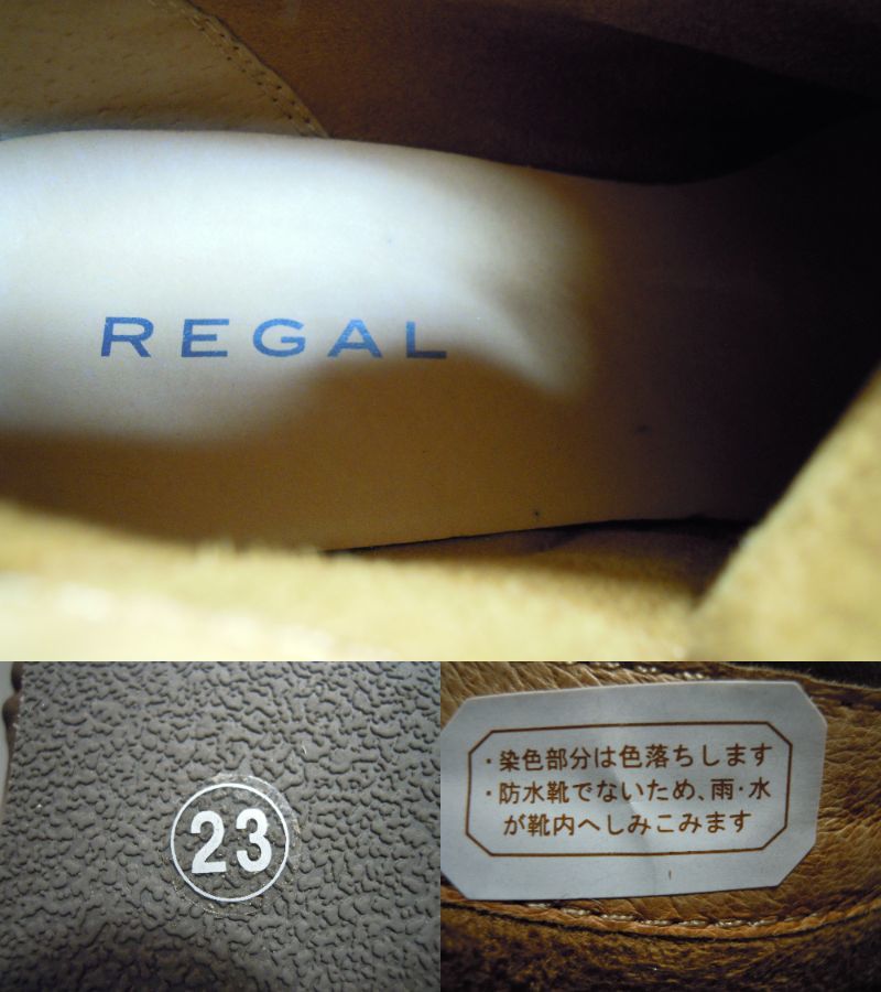 【ブランド・形態】 REGAL リーガル 本革ドレープブーティ OL 3E F40C サイズ23.0cmです。 【カラー】 ブラウンです。 掲載の実物写真はPC環境や光の加減により実物と色合いが若干異なる場合があります。 【特徴】 本格的なジョッパーブーティをよりエレガンスに上品に感じられる雰囲気で作りこんだトラッドな一足。 短めの丈感はシルエットが美しく、バランスの良いスタイリングが楽しめます。 きれいめからカジュアルまで幅広いコーディネートにお勧めアイテムです。 サイドにファスナー付きで脱ぎ履きしやすいのも魅力。 ヒール高:約3.5cm、最大幅:約7.8cm、 【状態】 少々使用感はございますが、特に目立つダメージは見受けられず、使用に問題無いと思われます。 アッパーは細かな擦れはありますが、クリーム手入れをしていただくと綺麗になると思います。 アウトソールの擦り減りは、さほどありません。 保存箱はありません。 【素材】 アッパー:本皮革 アウトソール:合成底 【サイズ】 23.0cm、 質量:約570g #リーガル #REGAL | |||