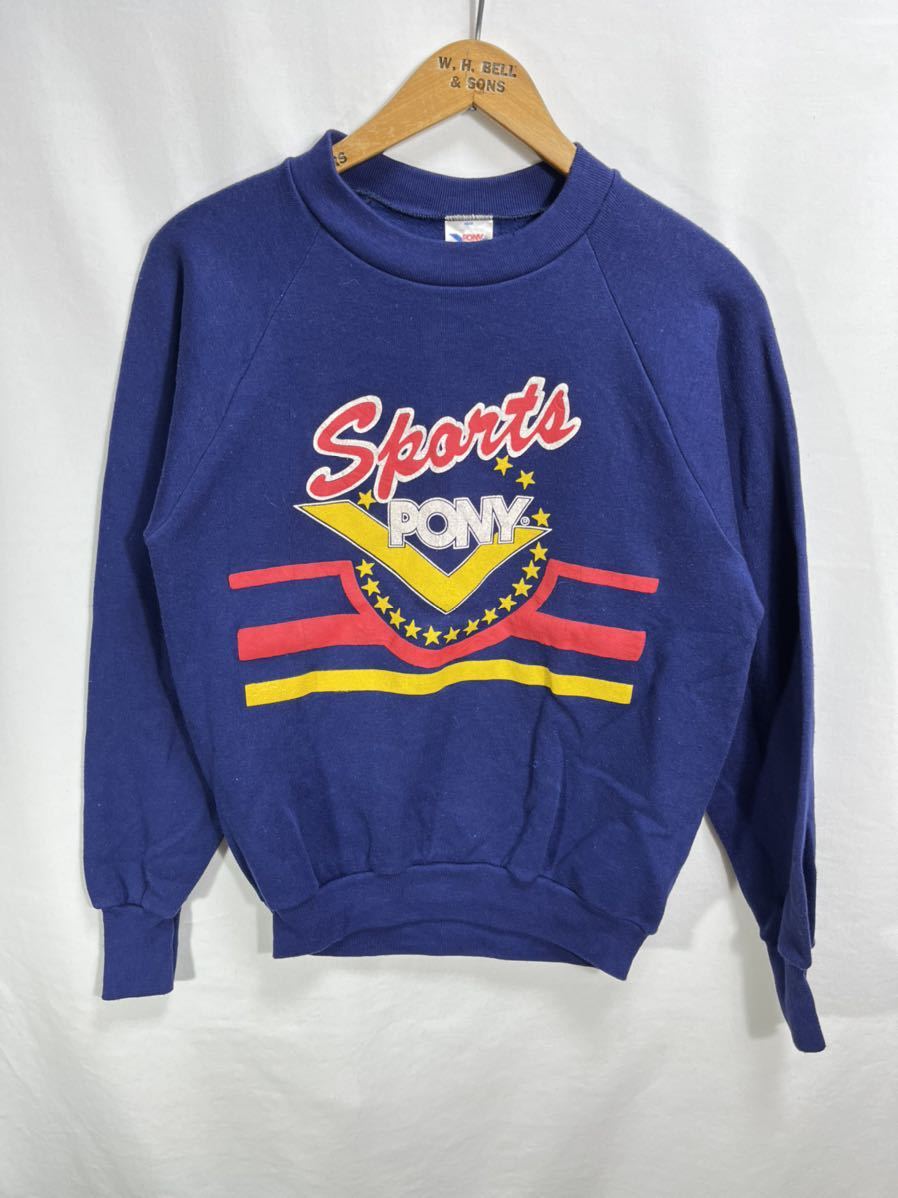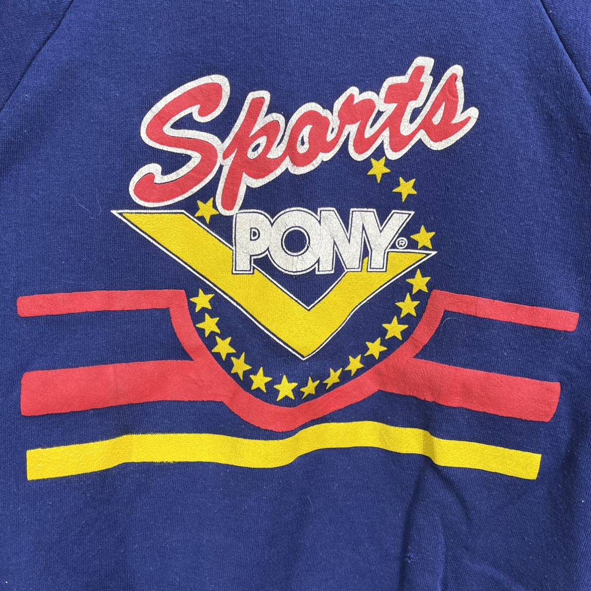 ■ 小さめサイズ! ビンテージ USA製 PONY ロゴイラスト スウェット トレーナー サイズM ラグラン ネイビー アメカジ ■