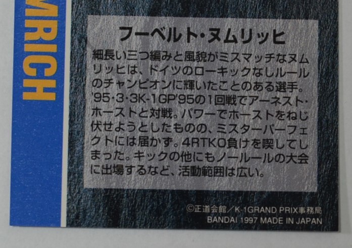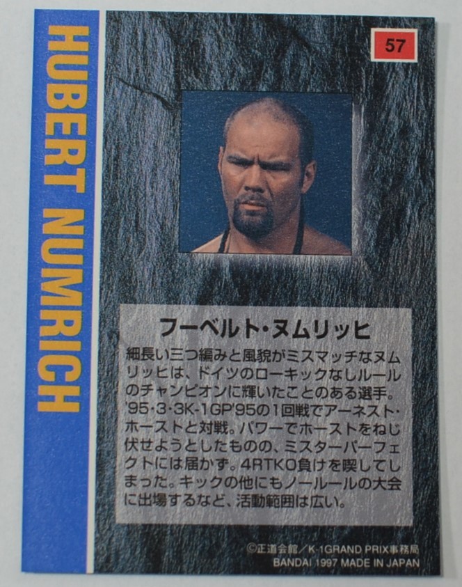K-1●HUBERT NUMRICH フーベルト・ヌムリッヒ●格闘技 トレーディングカード 6,5㎝×9㎝ 美品