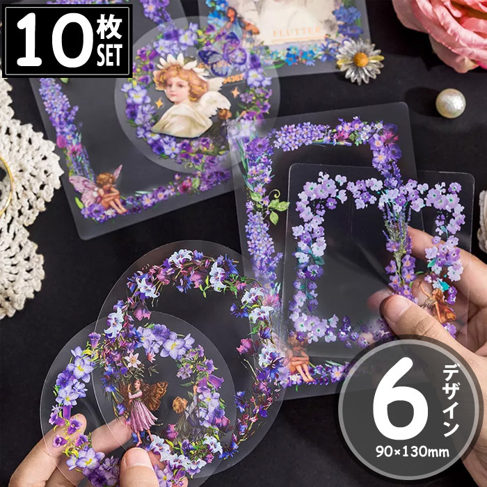 10枚 シール フレーム 枠 花 フラワー おしゃれ アンティーク ビンテージ デコステッカー アンティーク調 コラージュ レトロ 1076-2