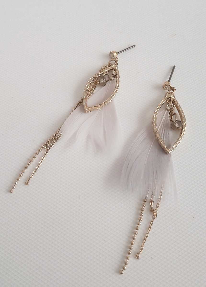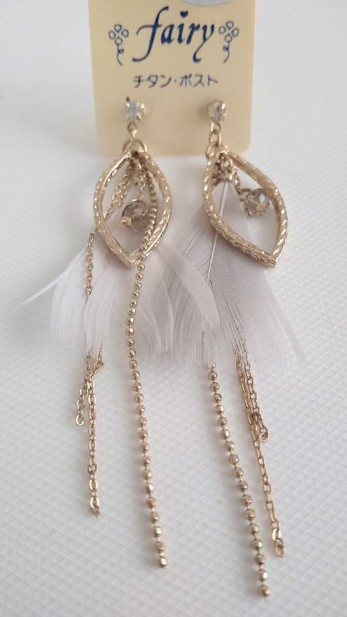 こちらは、fairy ゴールドカラー ホワイト羽根 ロングスタッドピアス になります♪