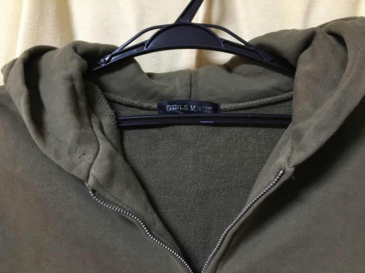 おなじみ GIRLS MAGIC カーキのジップパーカー サイズMです。