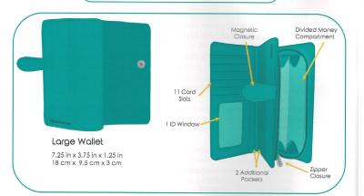 ◎ 札入れ×2、フリーポケット×1、ファスナー小銭入れ(仕切り付)×1、カード入れ×11、