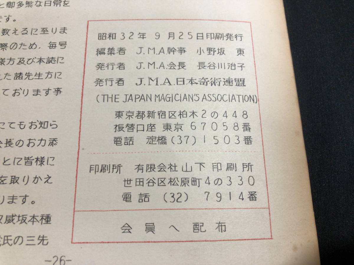 【奇術界報29】『195号 昭和32年9月』●長谷川治子●全26P●検)手品/マジック/コイン/トランプ/シルク/解説書/マニュアル/JMA