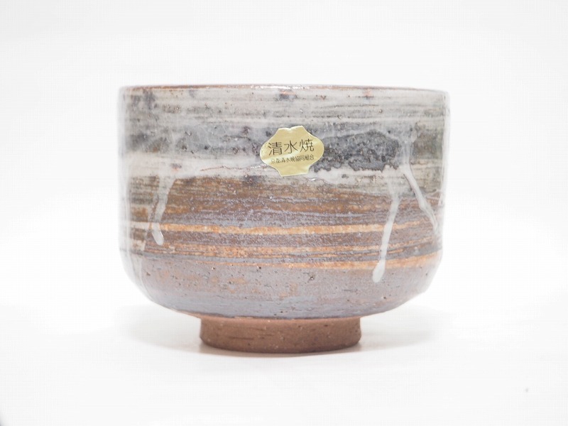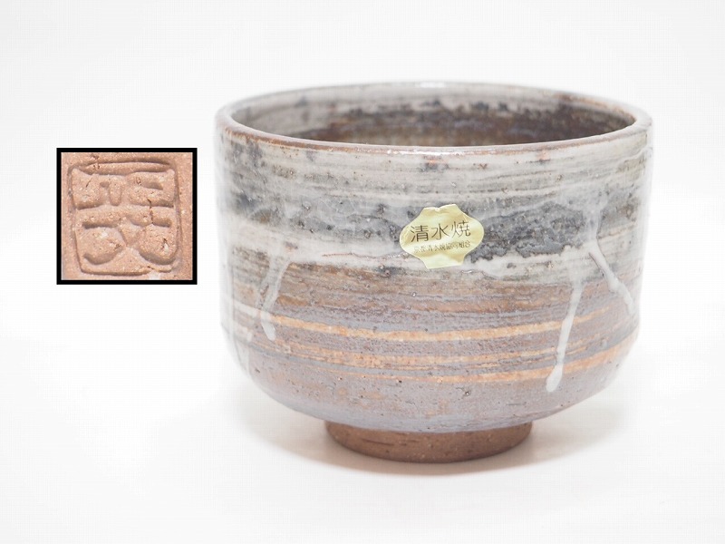 | A1182 清水焼 藤平正文 作 釉流し 筒茶碗 ☆ 茶道具 抹茶道具 抹茶器 茶懐石 茶事 抹茶碗 茶碗 陶器 京焼 作家物 在銘 陶印 美品 良品 無傷 | ||