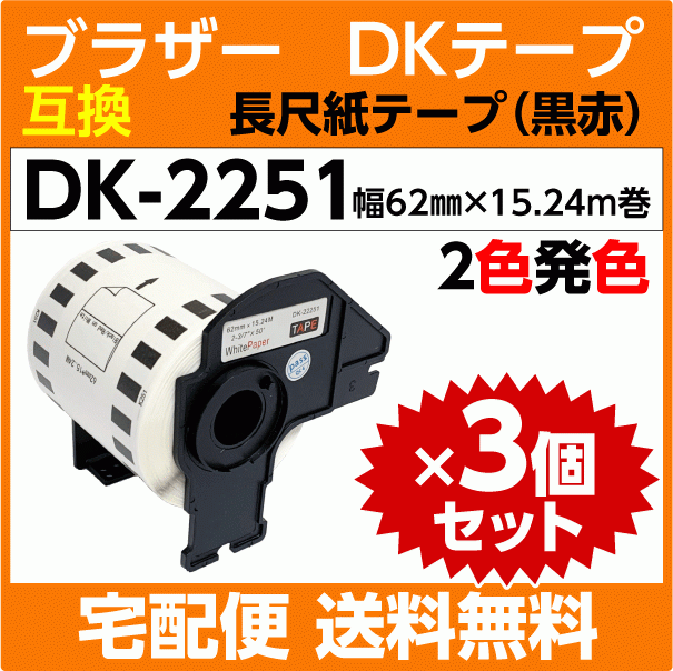 ブラザー ラベルプリンター用 互換ラベルテープ DK2251 x3巻セット