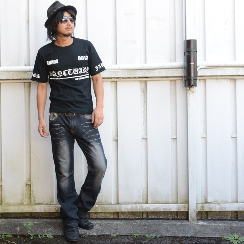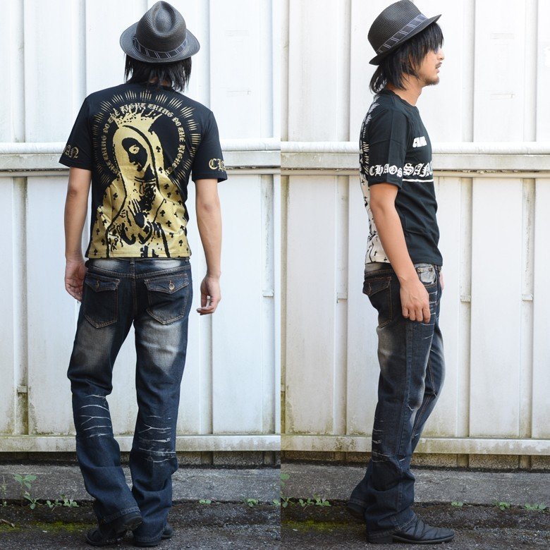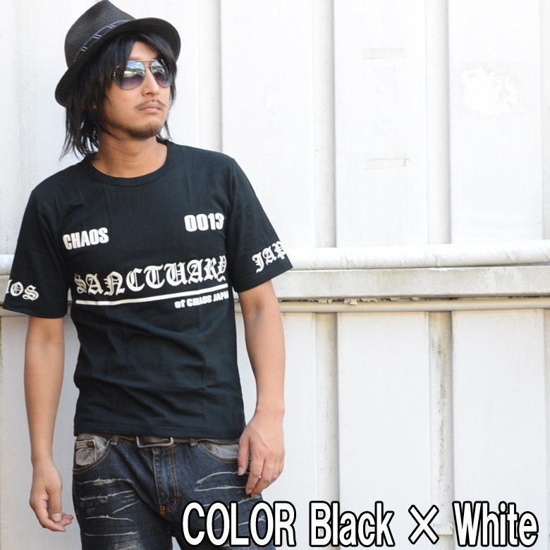Tシャツ 半袖 メンズ 半袖Tシャツ 半袖Tシャツ オラオラ 悪羅悪羅 カジュアル きれいめ ロック ch-ry-0003 ブラック×ホワイト L