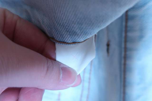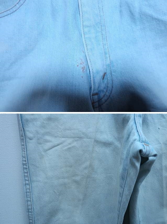 生地の数箇所に汚れ、パッチに生地の剥がれ、