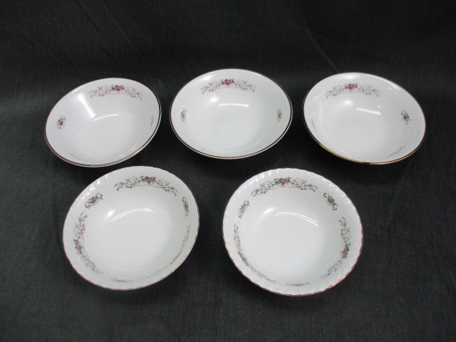 GA34 焼物 スープ皿 2種 計5枚セット 花柄 洋食器 磁器 昭和レトロ 古道具