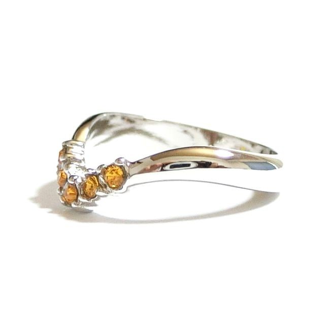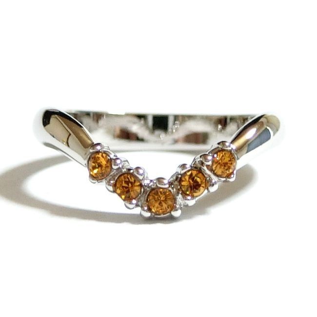 指を細く長く見せる効果のあるV字リングを、スワロフスキークリスタルで飾りました!