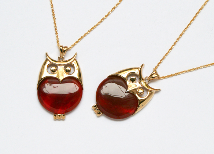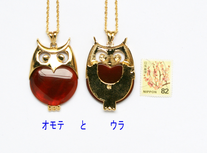SV925赤瑪瑙「ふくろう」ペンダント 2点セット