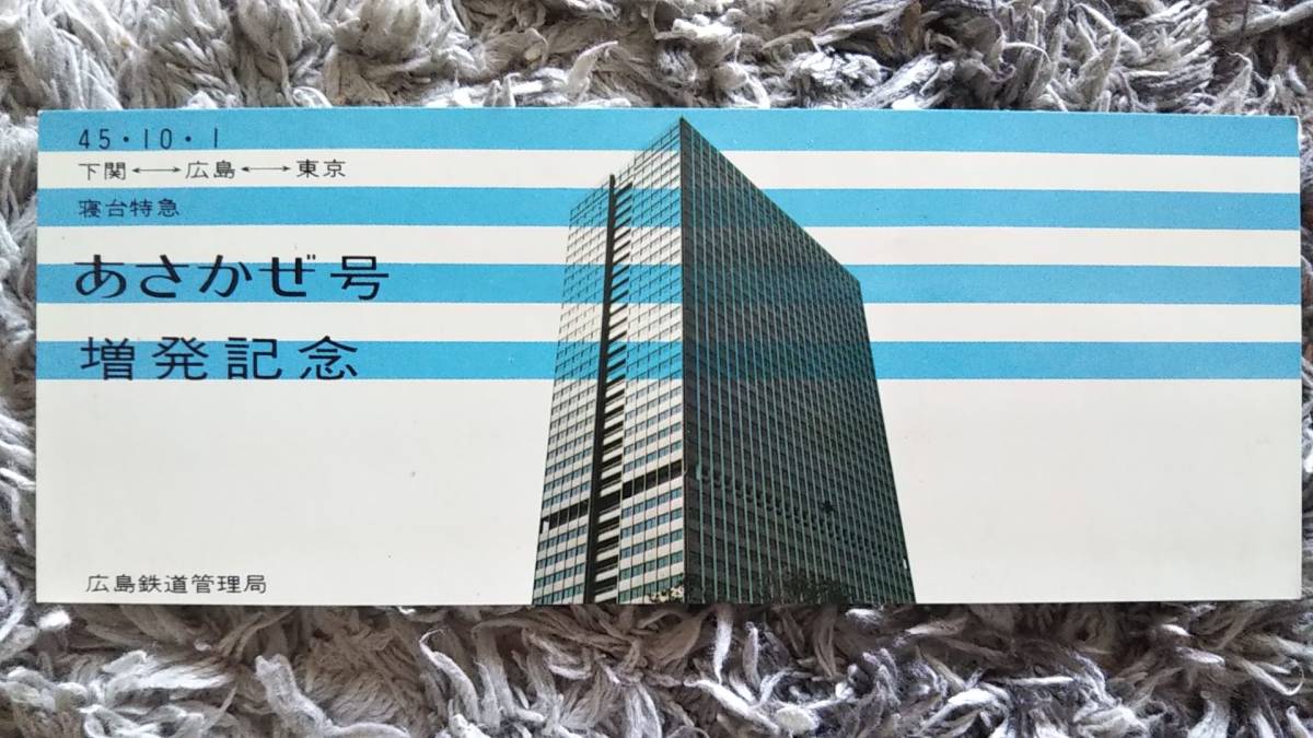 0310-87【国鉄記念きっぷ】寝台特急あさかぜ号増発記念券 昭和45年