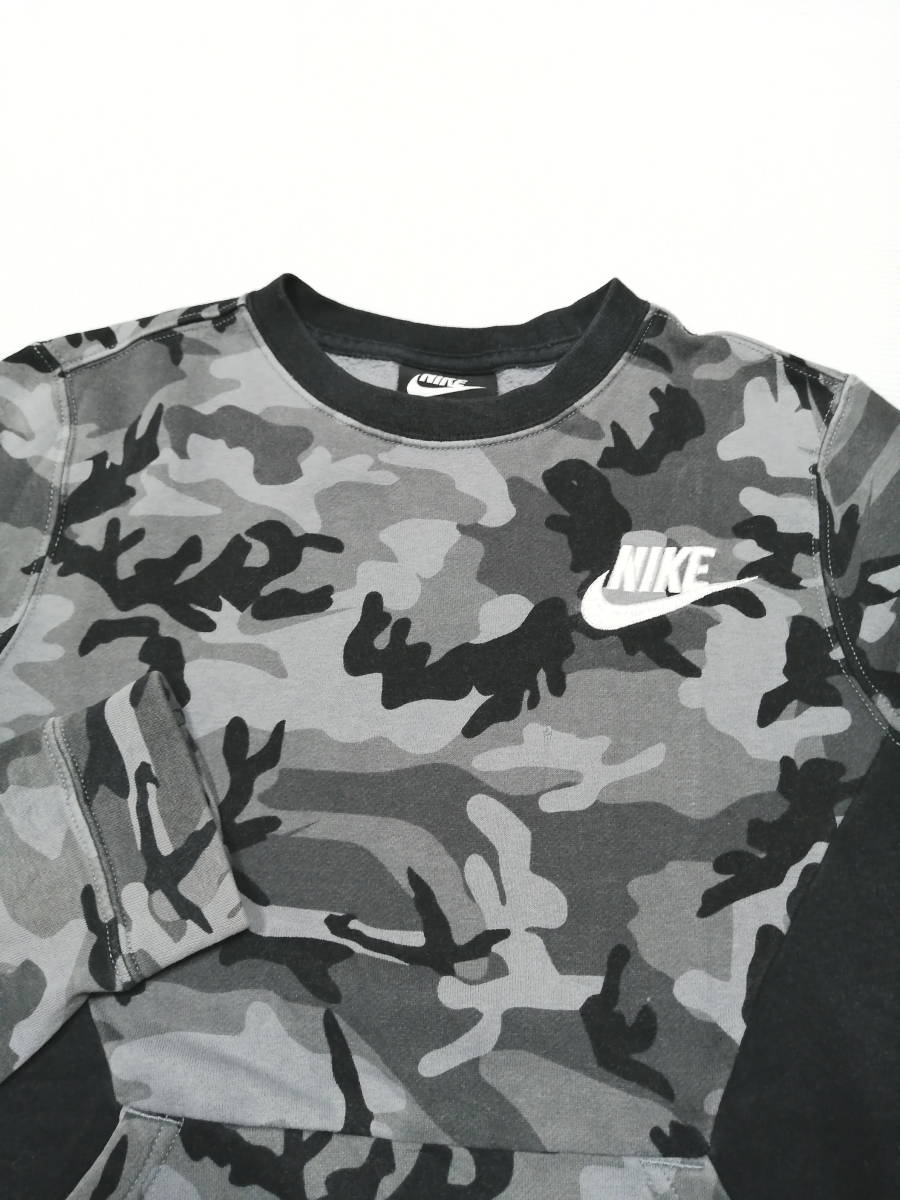 ナイキ NIKE トレーナー スウェット キッズ 迷彩 総柄 裏起毛  ししゅうロゴ フィンガーホール 石瀬3895