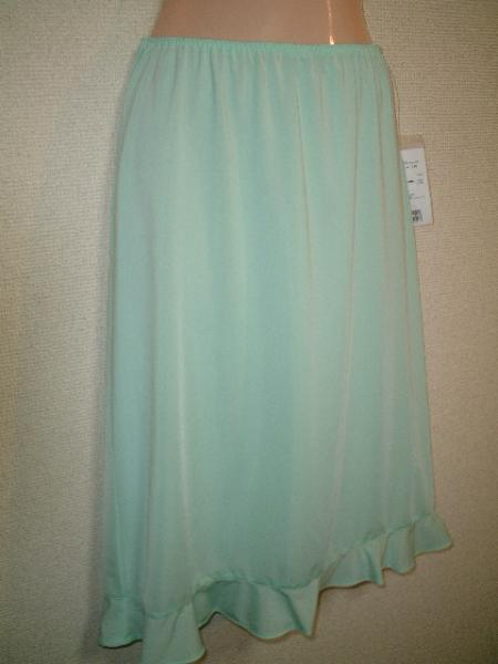 裾フリルがかわいいシフォン地のスカートです。ウエスト部分はゴムになっているので、だいたいW64CMぐらいまでは大丈夫です。色合いも良く、手軽におしゃれできると思いますよ。