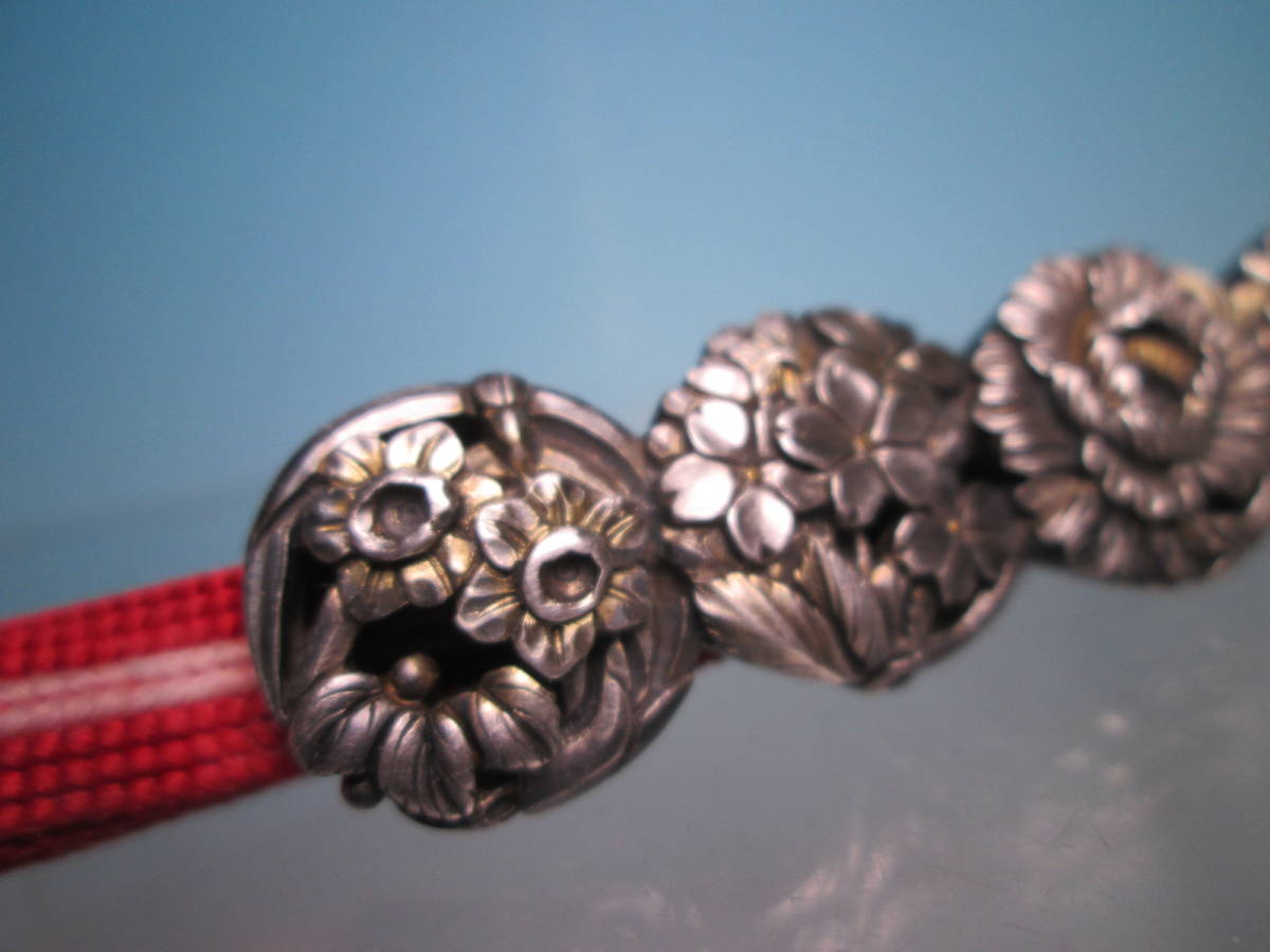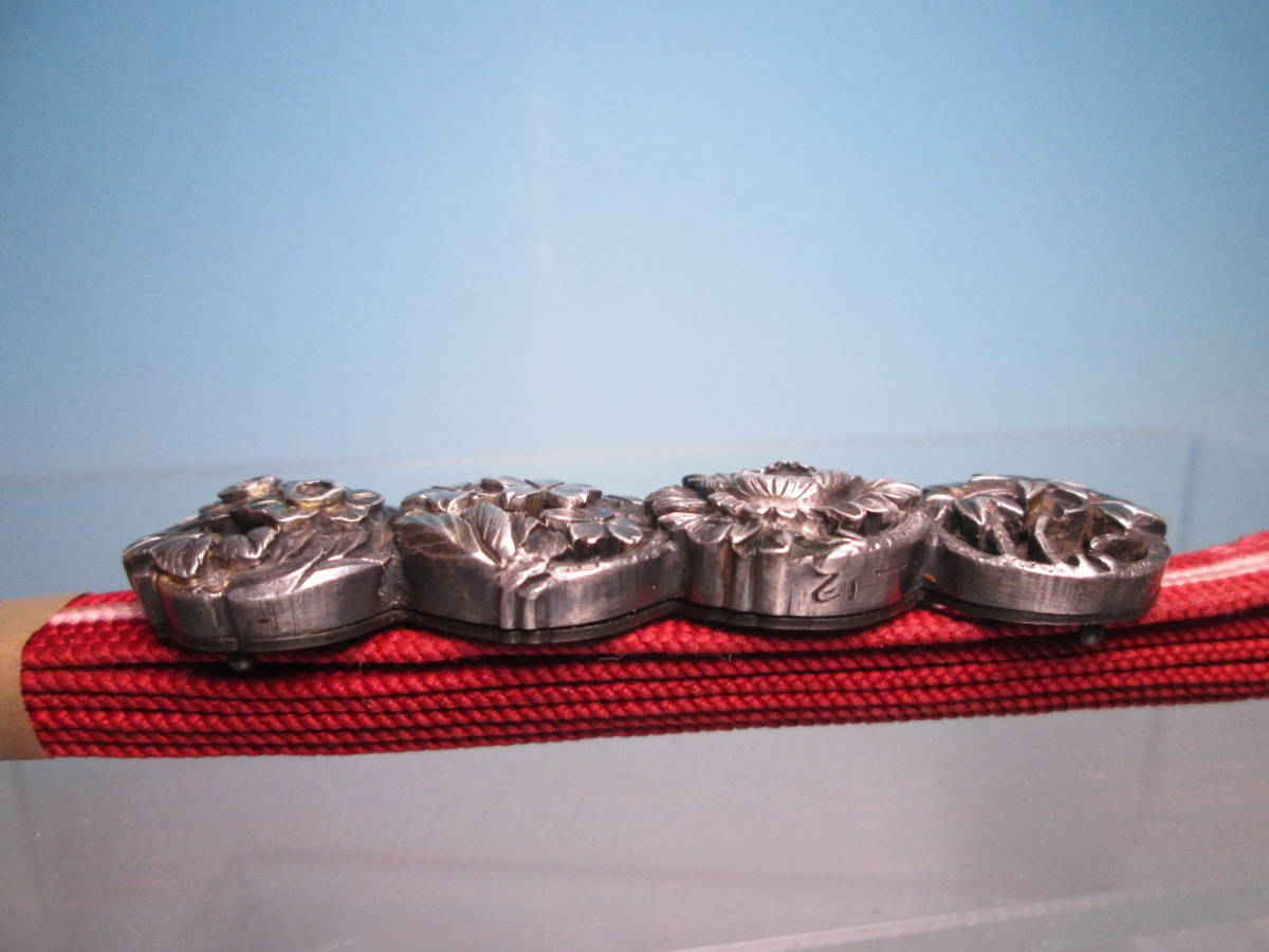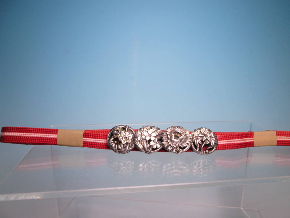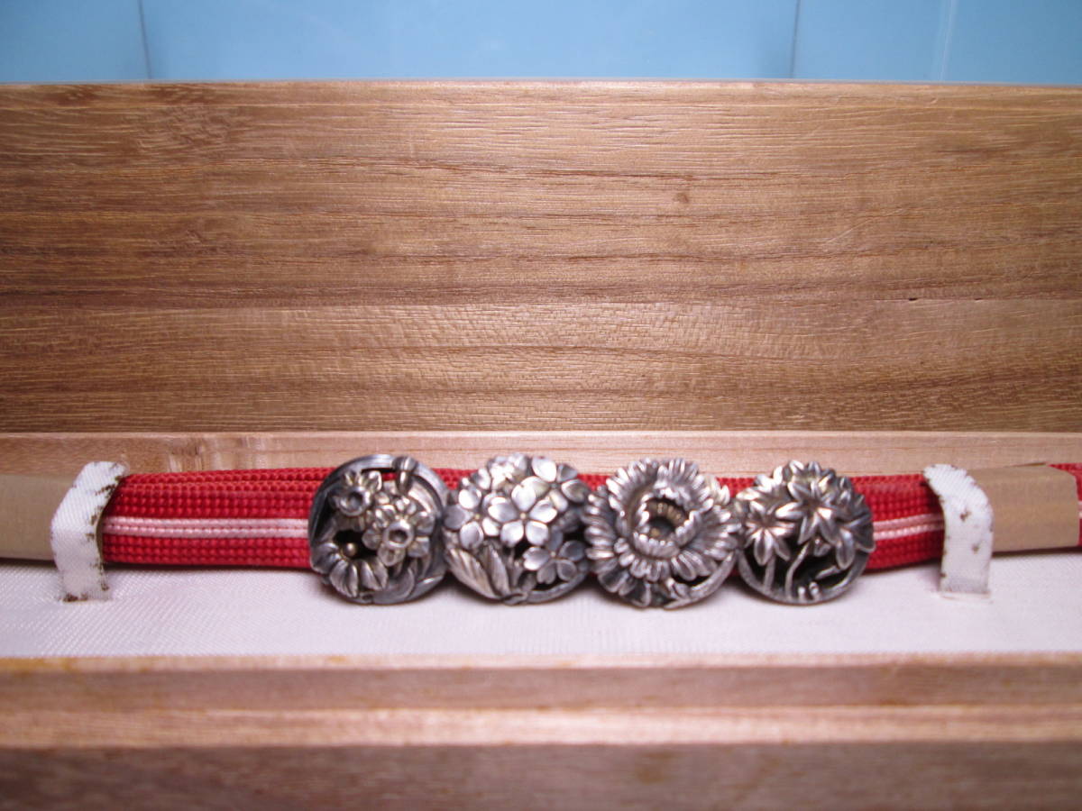 【江月】アンティーク・一正作 彫金細工 桜牡丹水仙紅葉の帯留め 22g 木箱付