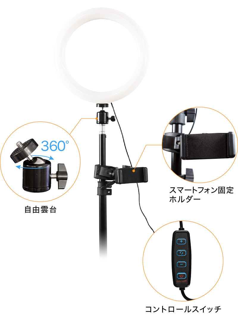 ・ディスプレイ越しでも正面から照明を当てることができる三脚が付属