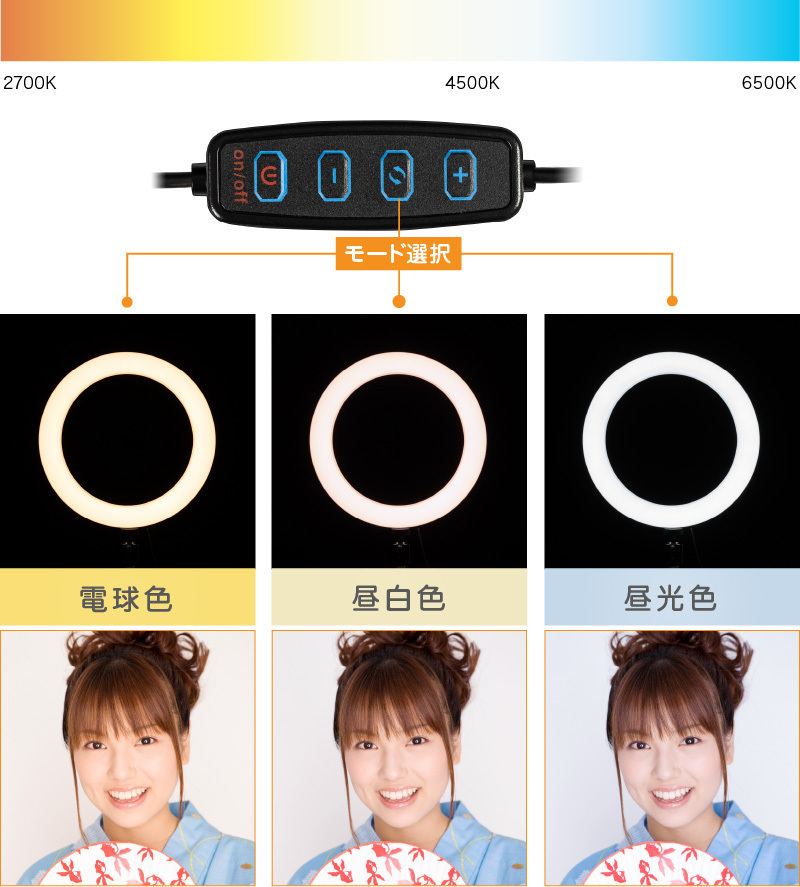 オンライン飲み会や仕事の合間の雑談の時などリラックスしたい時に最適な電球色モード、重要な会議など集中力を高めたい時に最適な昼光色モード、自然な肌の色でオンライン商談や社内外のミーティングに最適な昼白色モードをボタン一つで切り替えてご利用いただけます。