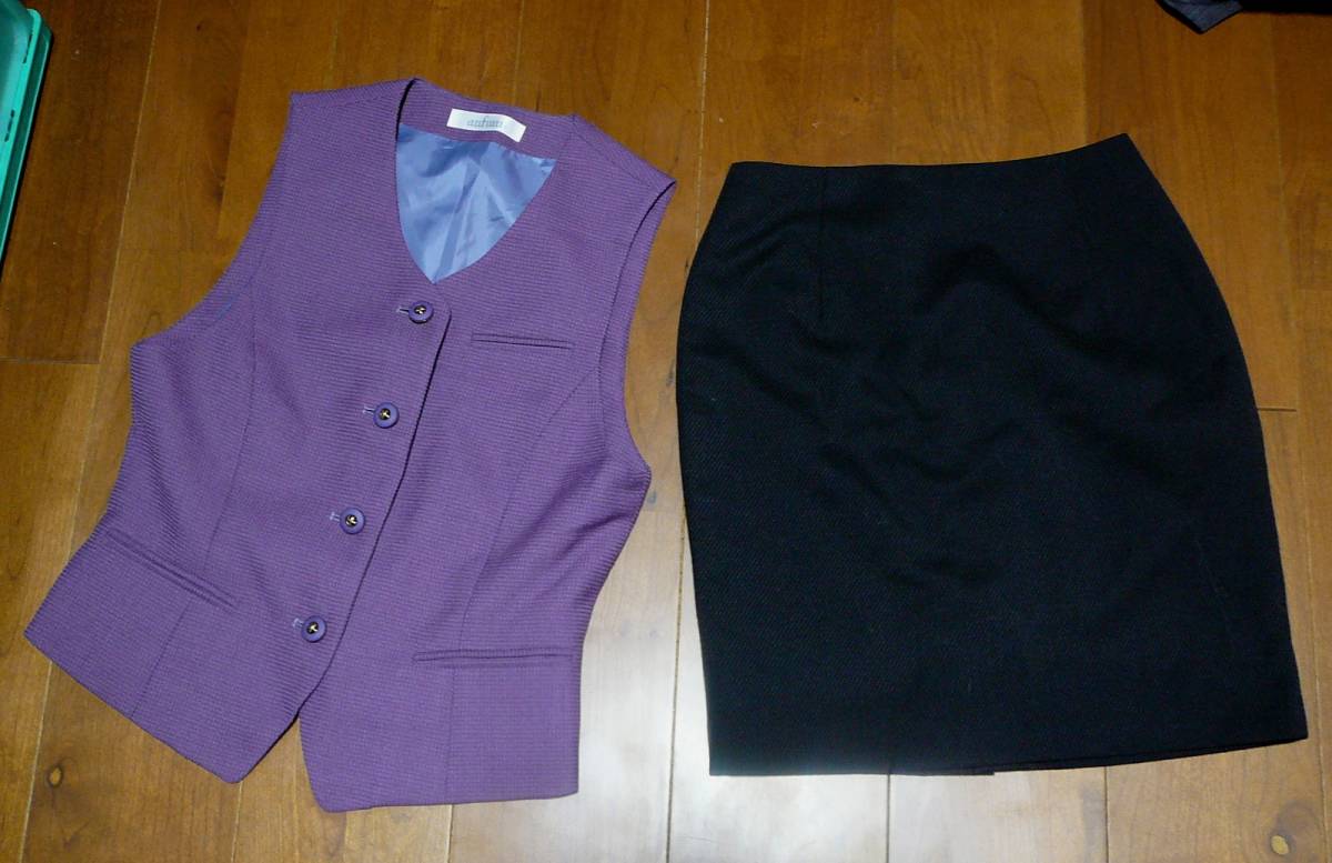 出品は画像②に写っているベストとタイトミニスカートの2点です