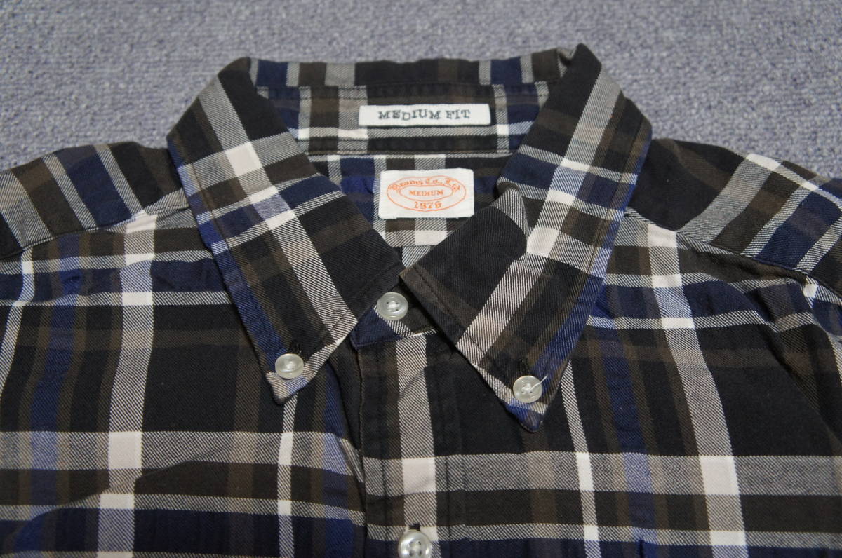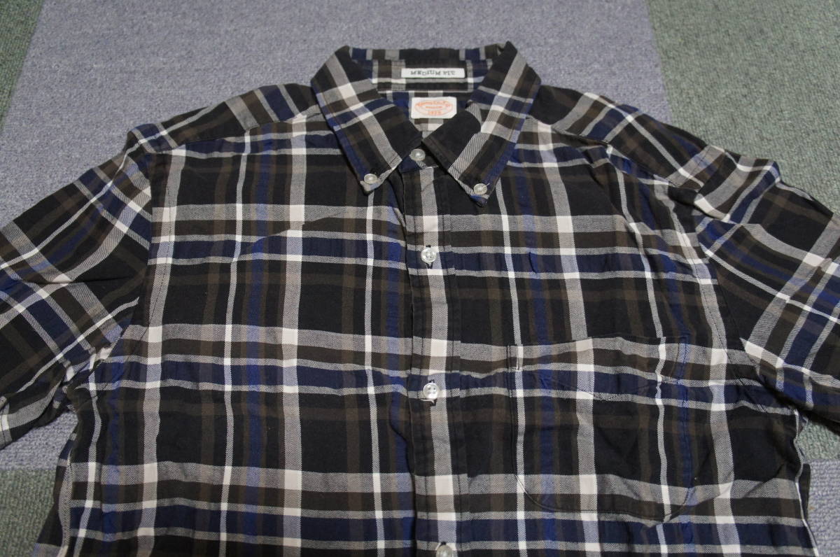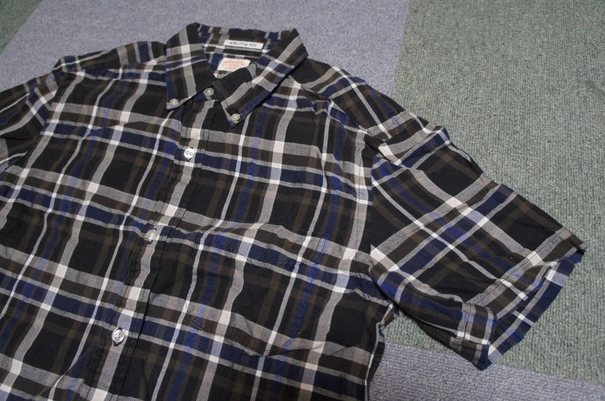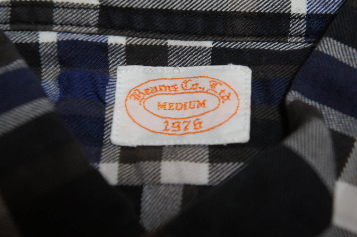 送込 ビームス BEAMS 半袖チェックシャツ 紺系 格安