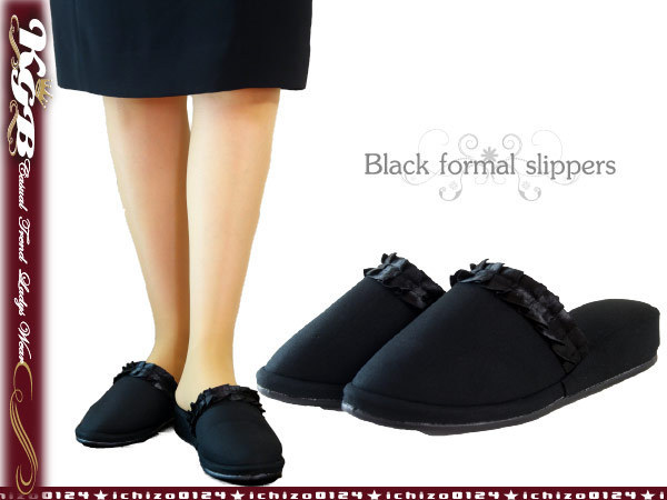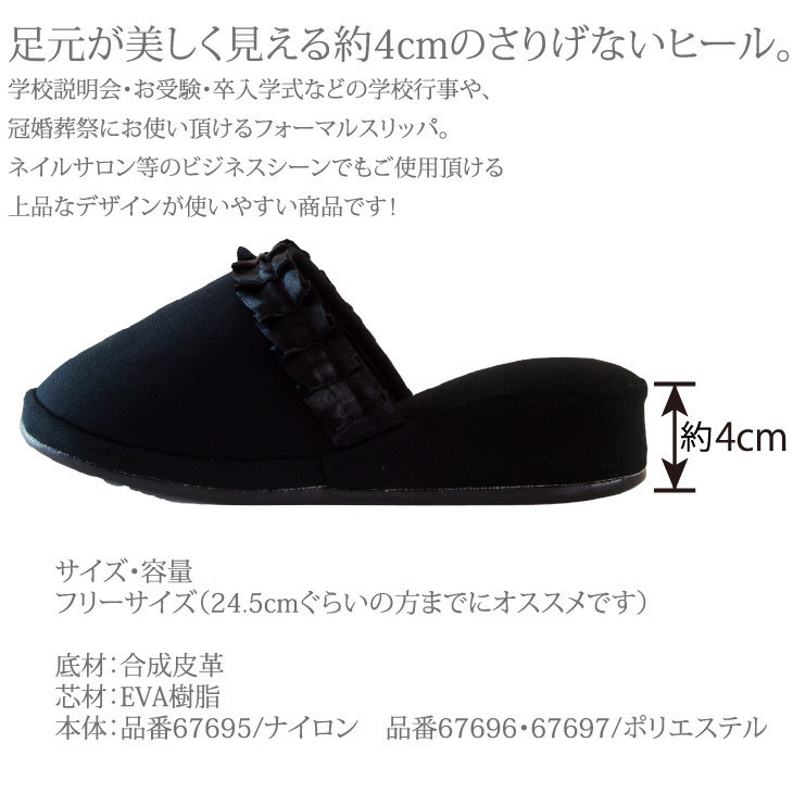 フォーマル スリッパ レディース 高さ4cm 冠婚葬祭 入園入学 授業参観 黒 オールシーズン