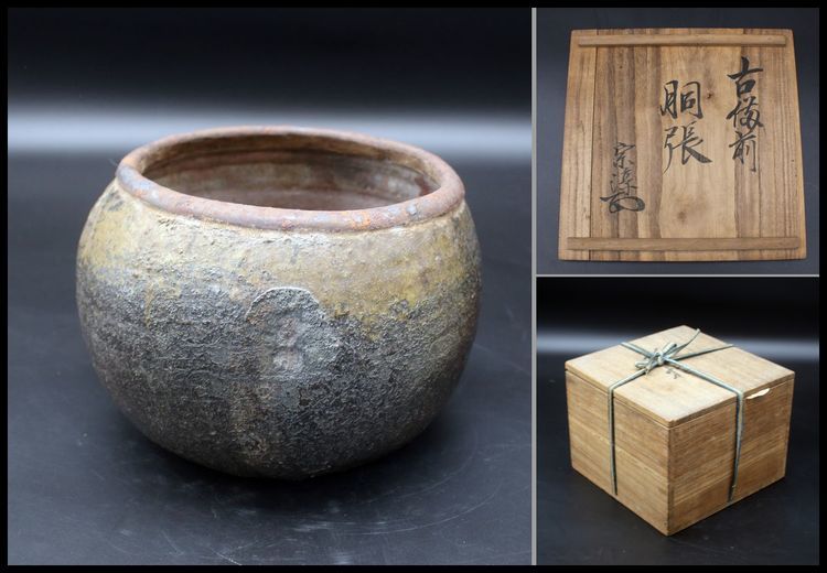 茶道具 室町~桃時代 宗淳識 古備前 腰張 水指壷 木箱をお預かりしまして出品いたしました。