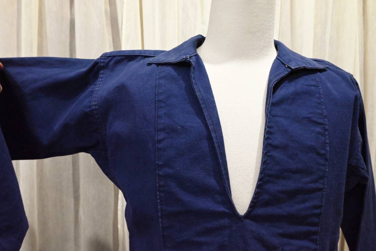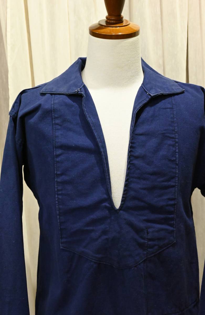 フランスヴィンテージ50’s60’sフィッシャーマンシャツ/インディゴコットンスモックセーラーマリンワークヨーロッパ古着ΓMT