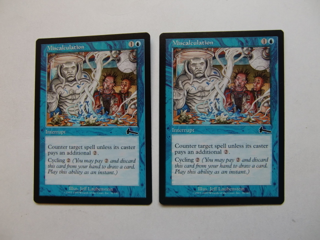 B知人の委託品です。 画像が全てです。 MTG 誤算/Miscalculation 英語4枚 です。 何語だか分らない時があります。 エキスパンション、外国語(言葉)は画像で確認をお願いします。 カードはプレイしています。 プレイ後、カードはスリーブから出してストレンジボックスの中で保管していました。 カードに目立つ擦り傷、キズ、ペン跡のようなキズ、汚れ、角や端に傷、白枠、黒枠にキズ、などのキズが結構あります。 スリーブに入れないでストレンジボックスに保管してたので擦り傷が沢山あります。 カードからタバコや香水の匂いがします。 カードが大きく丸まっていたり反ってたりしています。 気が付かない部分がありますので程度を気にする方は入札をご遠慮下さい。 程度はジャンクです。 コレクションには向きません。 何か起きた場合には自分では対応が出来ませんのでご理解頂ける方のみ入札をお願いします。 普通郵便で発送します。 郵便事故や郵便破損が起きた場合には保障できません。 ノ-クレーム、ノーリターンでお願いします。