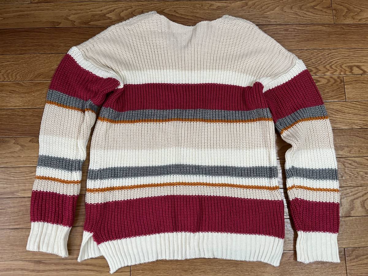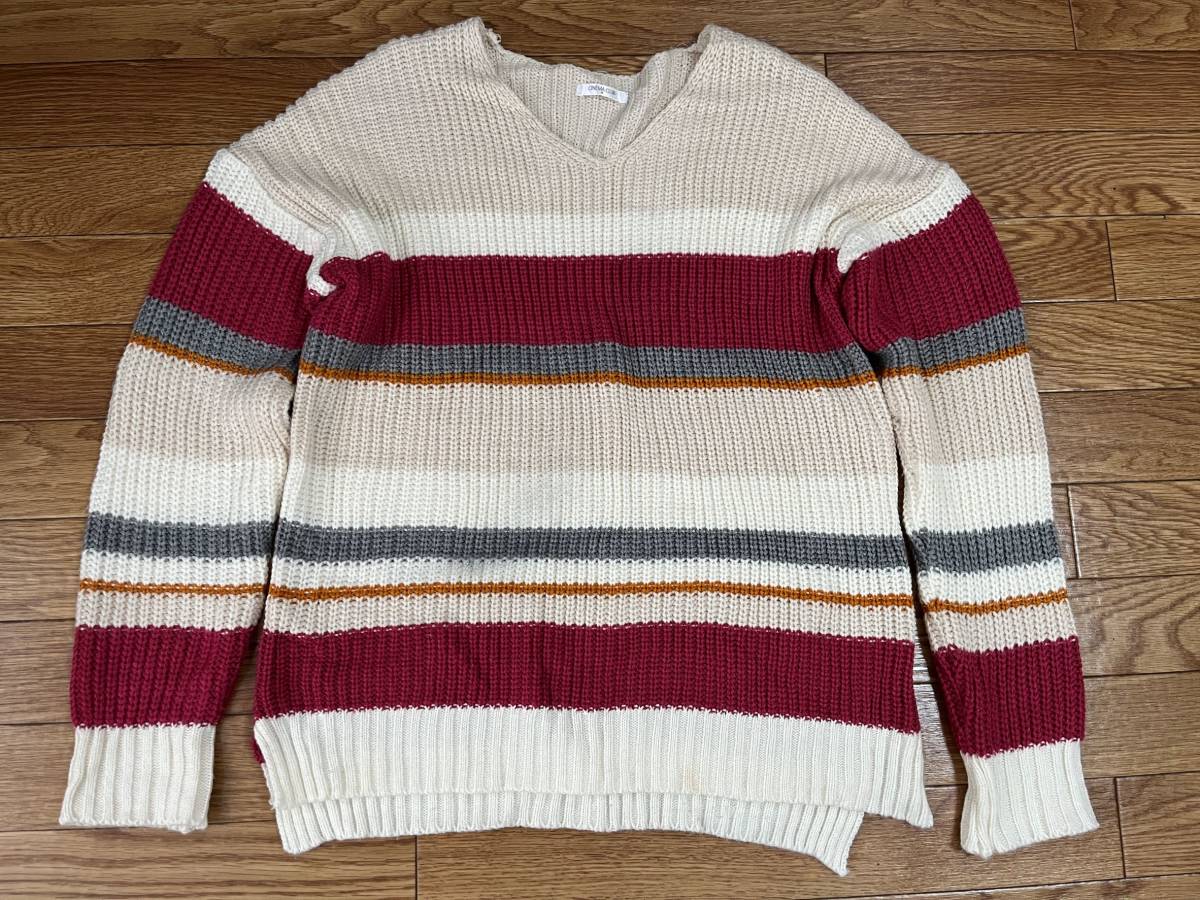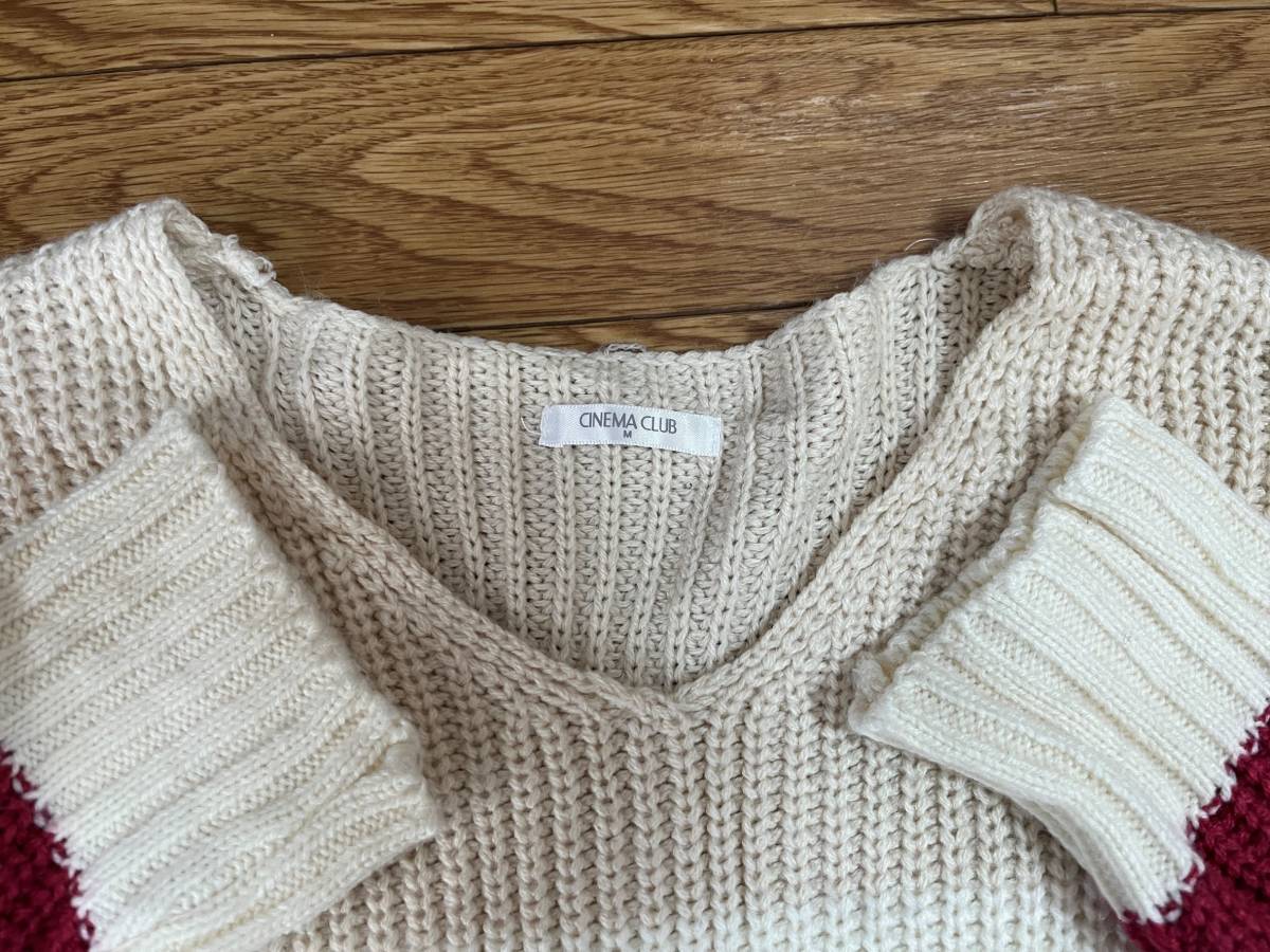 CINEMA CLUB ニット サイズM ボーダー レディース ワイン セーター ホワイト カーディガン 白 赤 レッド オレンジ